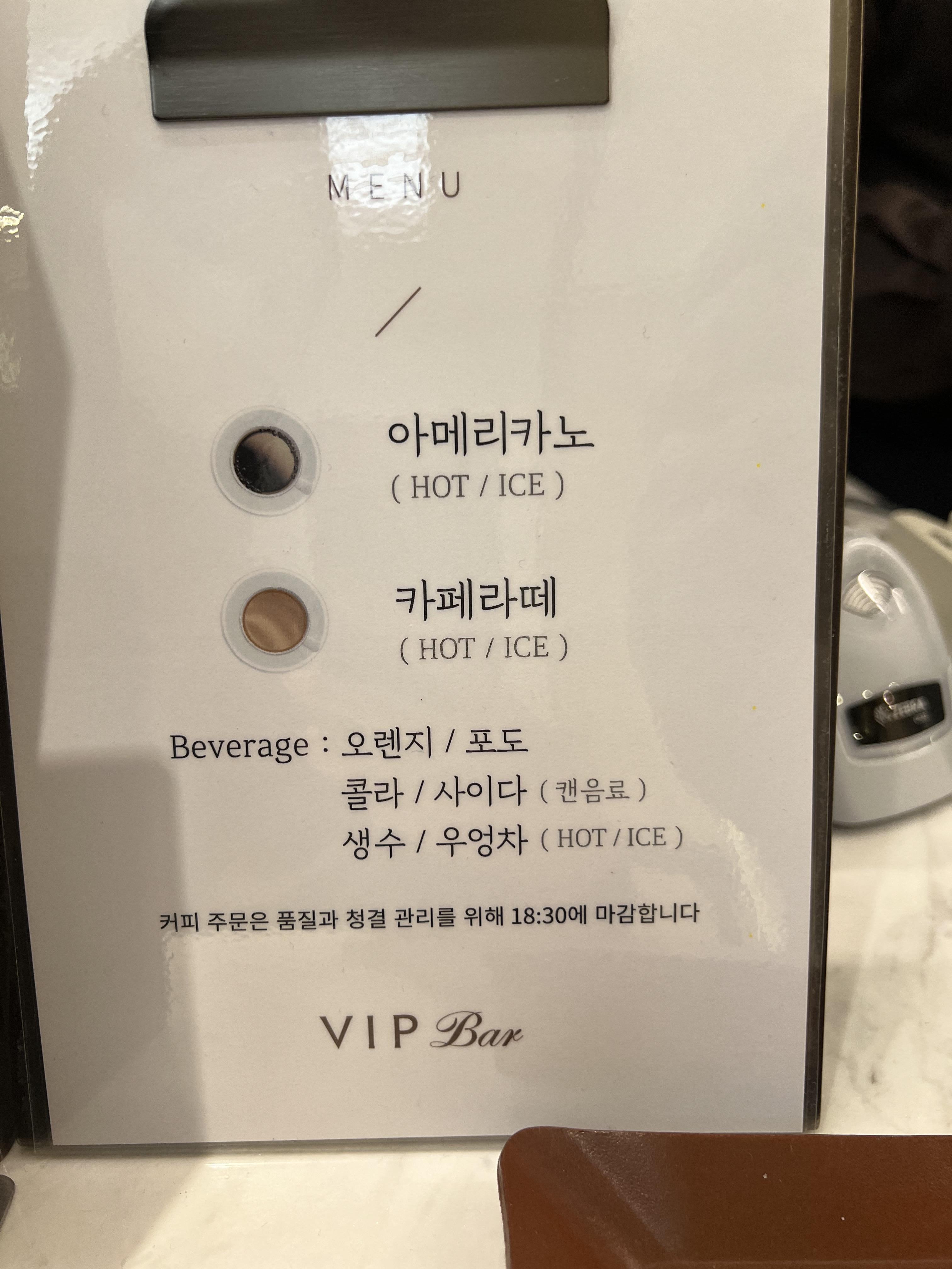 vip에서 제공하는 음료 메뉴입니다. 저는 주로 아이스 아메리카노를 먹는데 맛 괜찮아요. 공짜 커피 치고 맛있어요. 백화점 폐점시간보다 빨리 마감하니 저녁 6시 반 이전에는 가셔야 합니다.