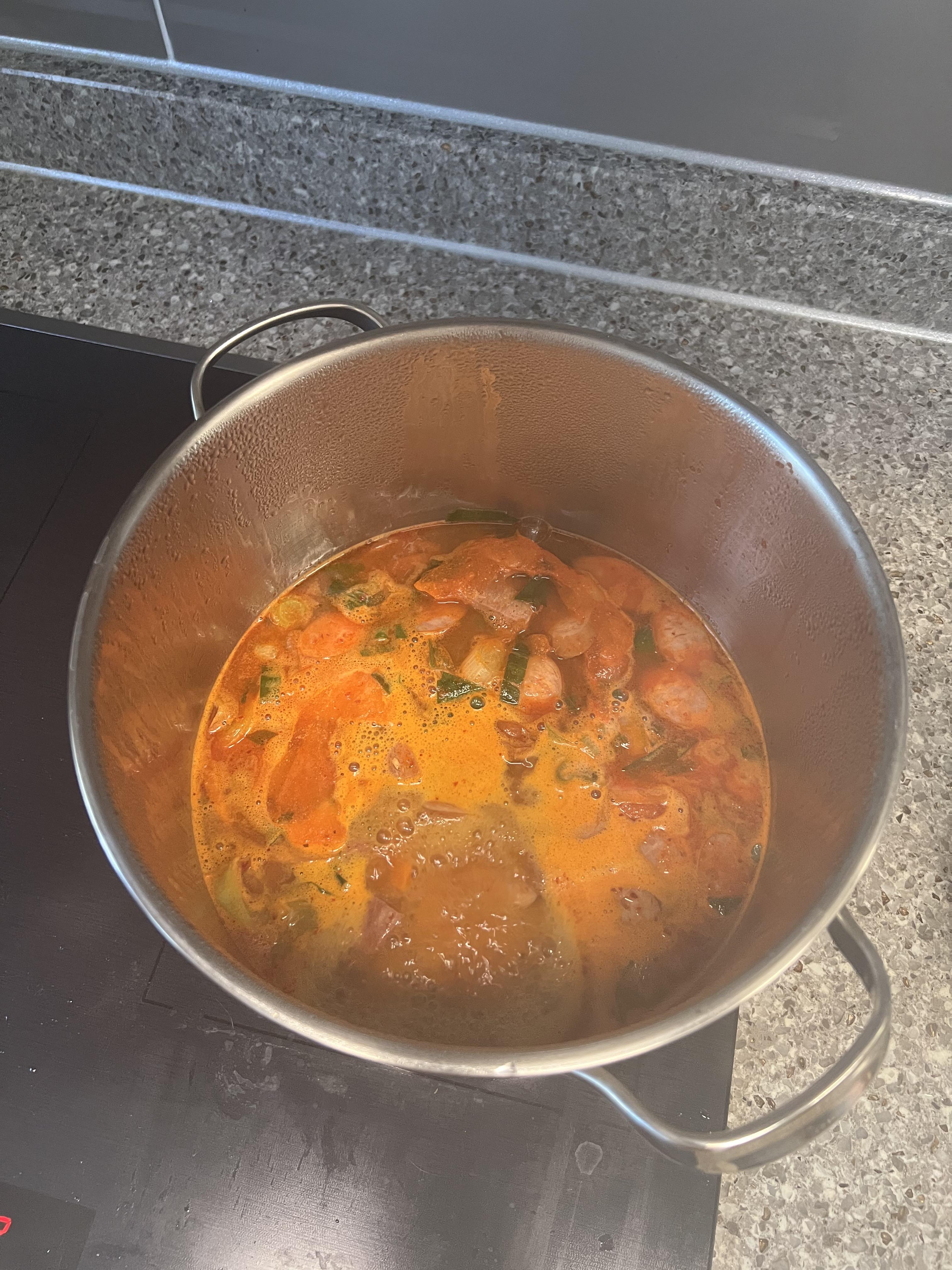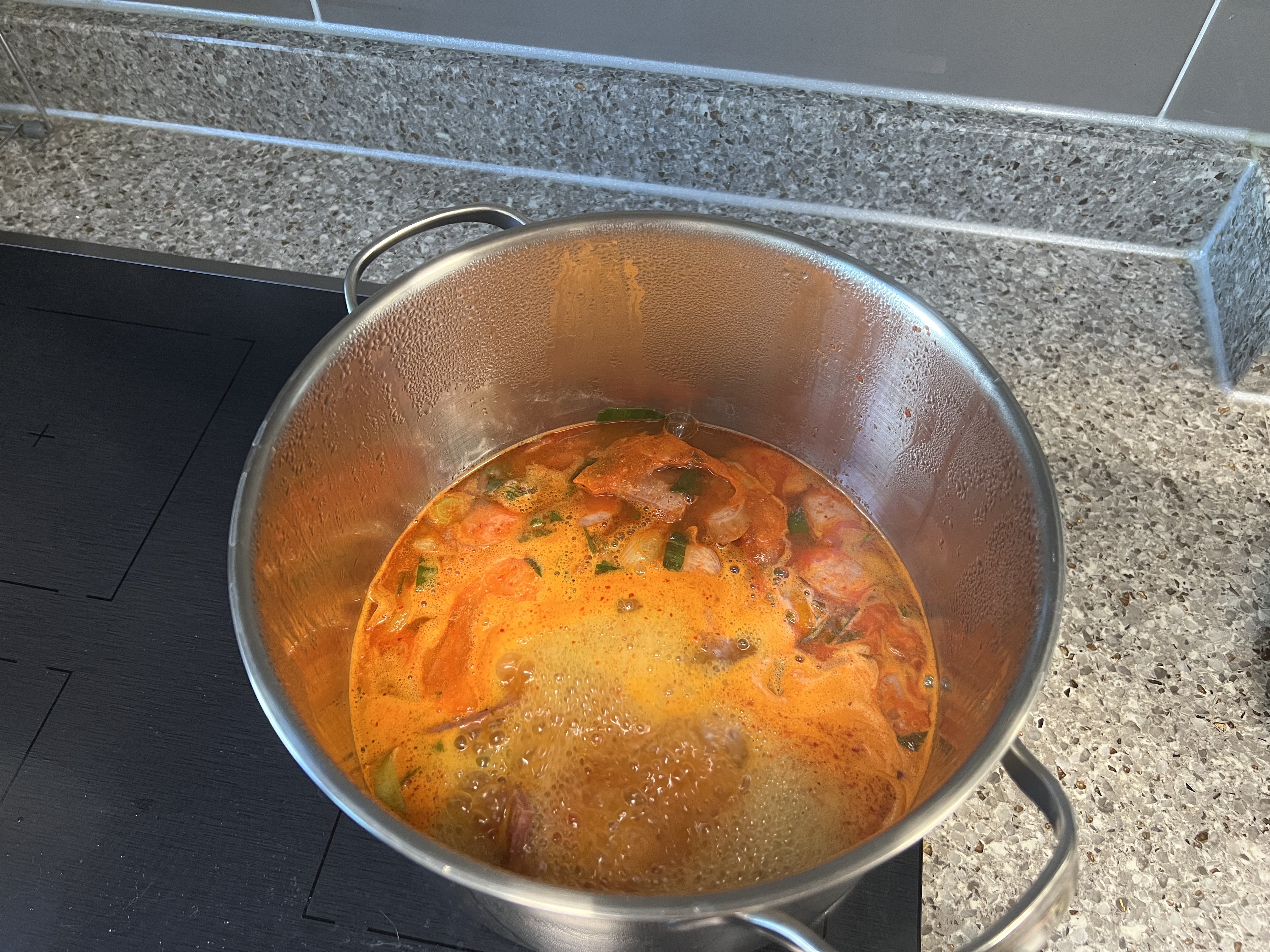 해동이 안 된 채로 10분 정도 강불에 끓이다보니 거의 다 녹으면서 끓기 시작하더라구요. 해동을 미리 하시는 걸 추천드리지만 굳이 안 해도 된다는 거 명심해주시구요ㅎㅎ