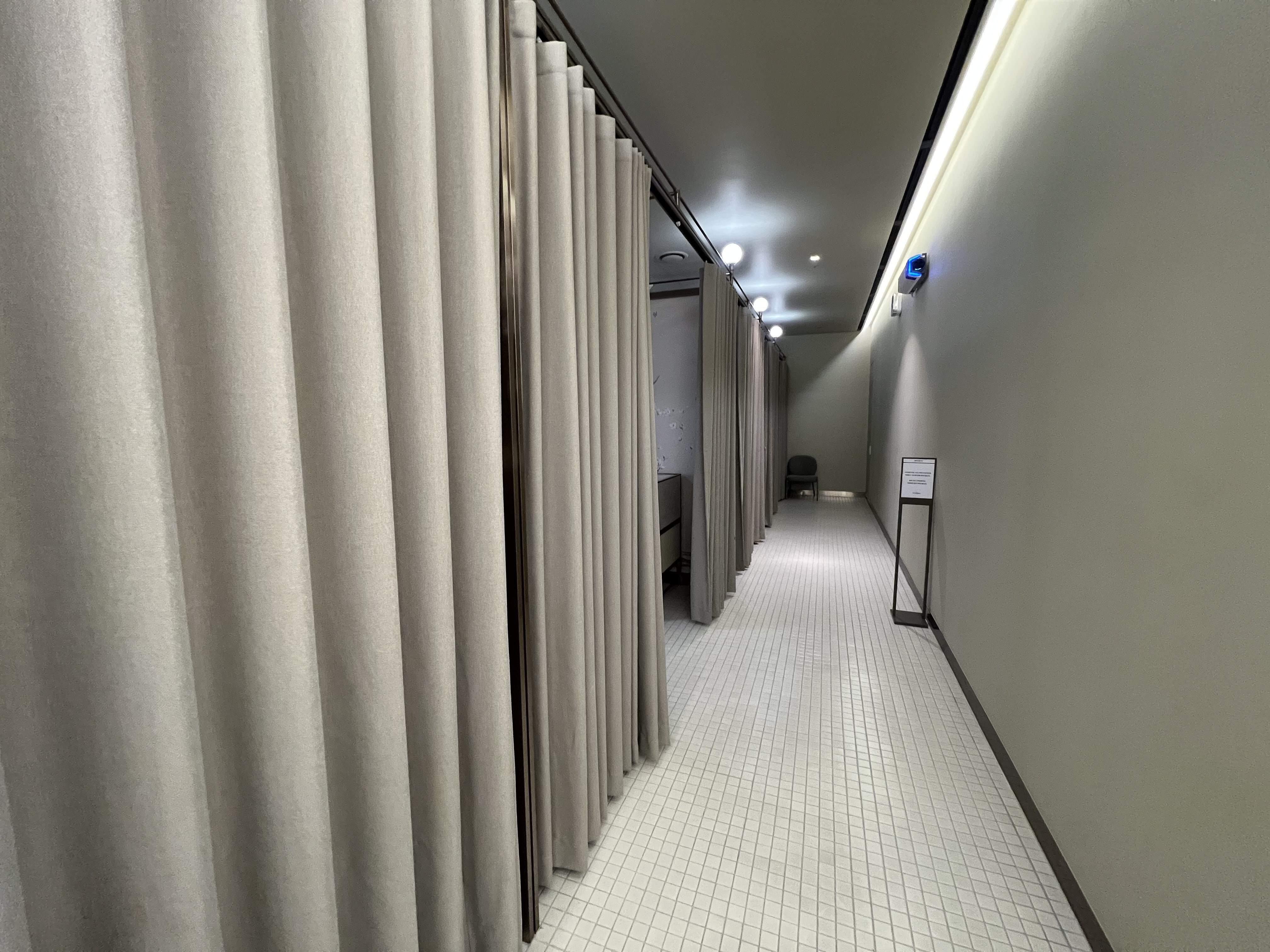 안쪽으로 들어가면 이렇게 커튼으로 분리된 더욱 프라이빗한 수유실이 마련되어 있는데요, 모유수유나 젖병수유 등 더 편하고 안락하게 하고 싶으시면 여기서 하시면 됩니다. 조명까지 은은해서 정말 안락해요.