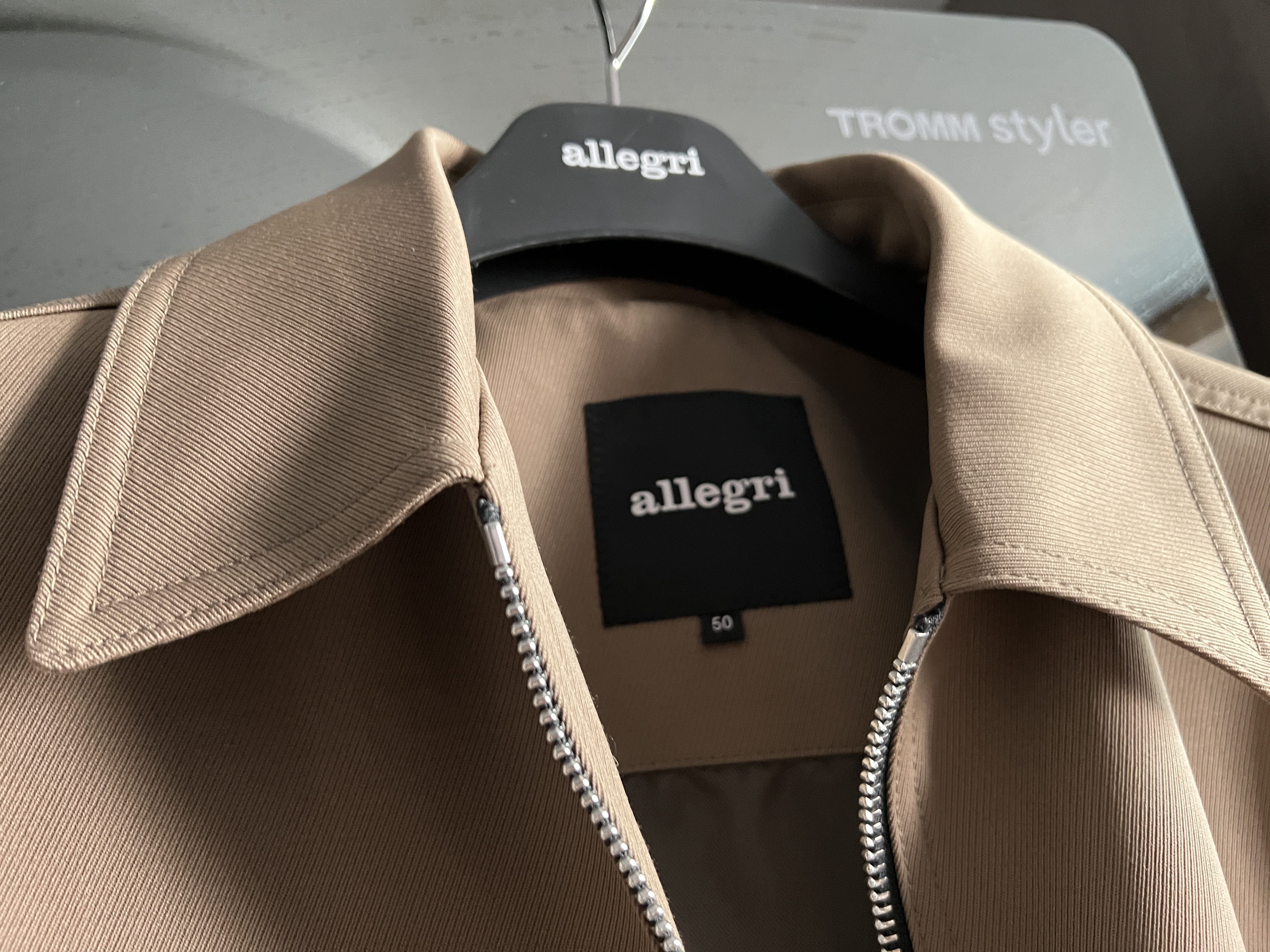 카라가 저렇게 약간 큰 게 특징이고요. 투웨이 지퍼에 전반적으로 아주 깔끔한 디자인으로, 오래 입을만한 옷이다라는 생각이 절로 들었습니다. 색감은 약간 짙은 베이지 컬러인데, 촌스럽거나 국방색? 스러운 느낌은 덜해서 아주 좋았습니다.