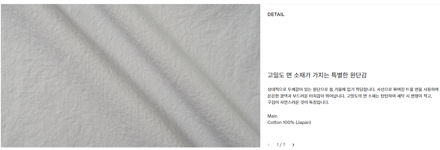 좌측이 thin, 우측이 bold 버전입니다. 소재 뿐만 아니라 색감도 다릅니다. 컴포트 셔츠 실버 thin은 색감이 정말 오묘해서 참 끌리는 것 같아요. 어떤 브랜드에서 구현하지 못한 색감이라고 해야될까.. 되게 매력적인 색감입니다. 그리고 두 제품 모두 가격은 189,000원입니다.