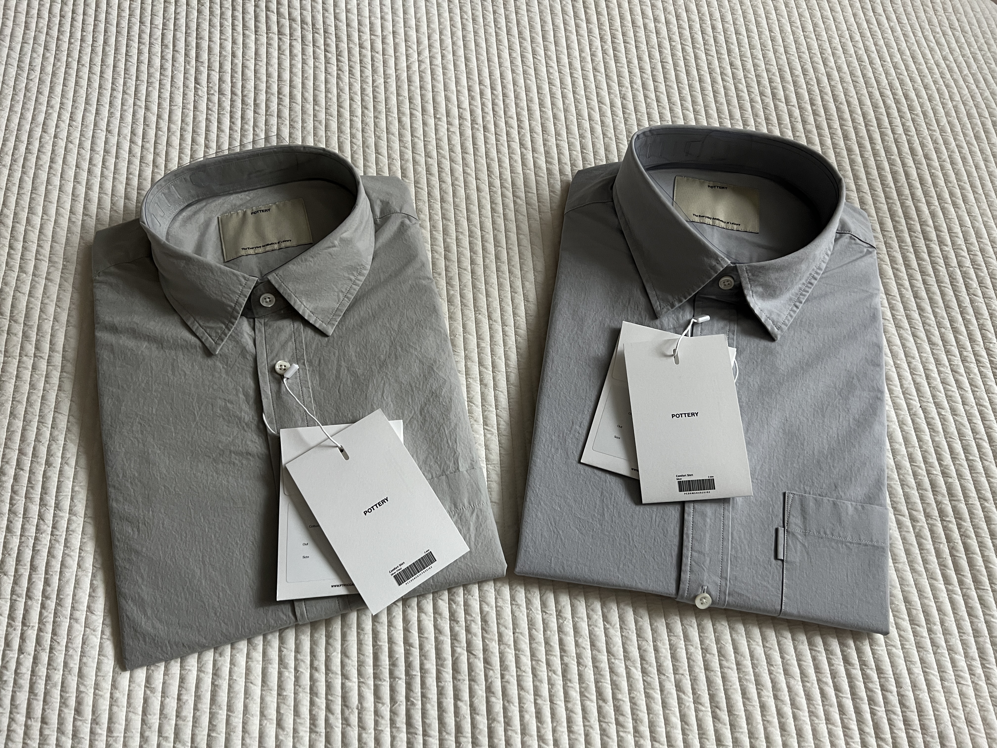 사실 '21년부터 이 브랜드의 수 많은 제품을 경험해 본 사람으로서, 포터리 컴포트 셔츠 하나만큼은 정말 믿고 구매해도 된다고 생각합니다. 그 중에서도 실버 컬러가 가장 이쁘고 잘 팔리는 컬러인데요. 마침 포터리에서 보다 두꺼운 재질의 bold 버전을 출시해서 비교 후기를 남겨볼게요. 후기 순서는 제품 정보, 비교 사진, 착용샷 및 사이즈 팁, 할인 방법 순서로 남길게요.