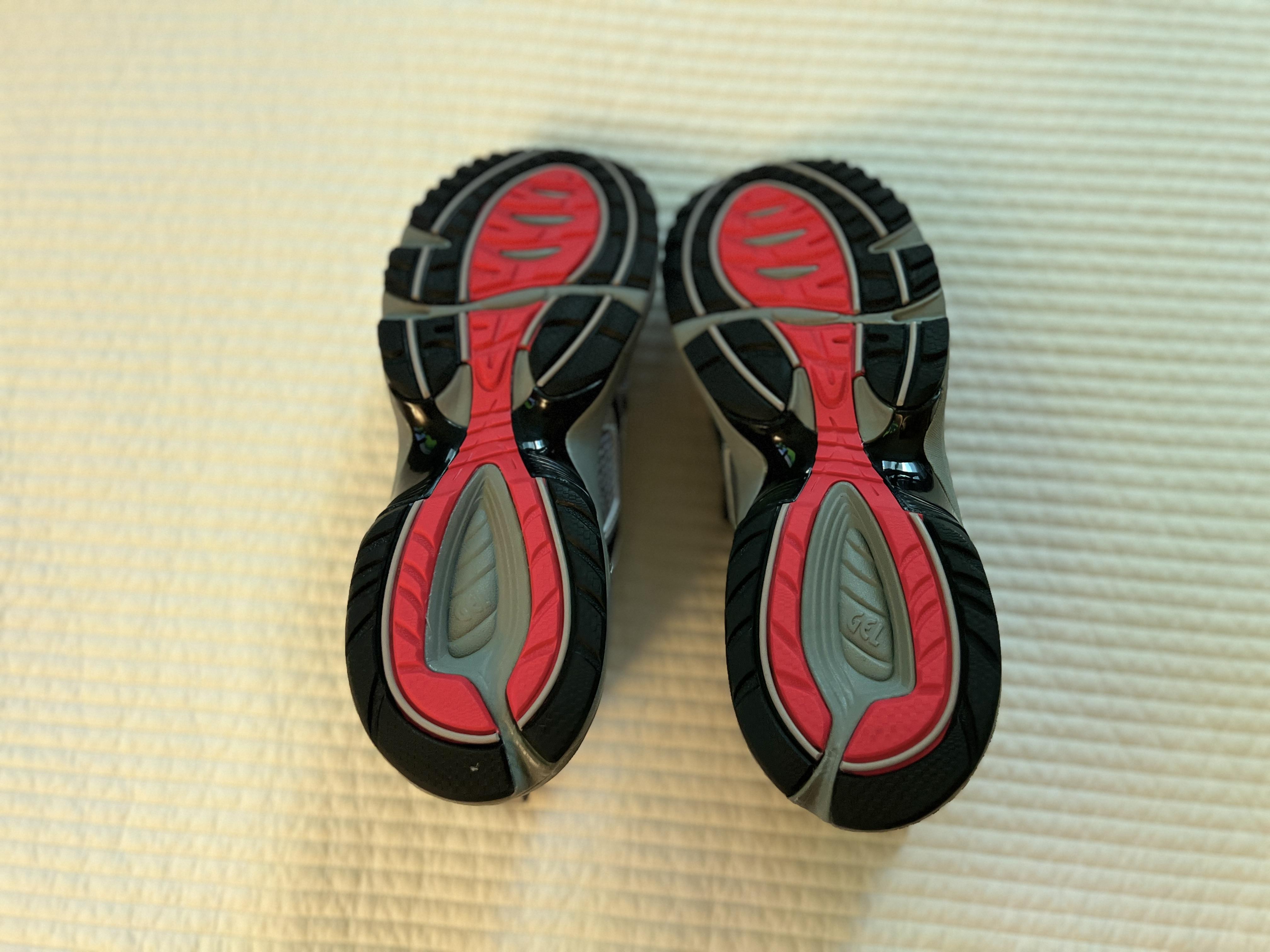 아식스 프레자 위워 제품의 특징이 바로 밑창입니다. 밋밋한 고무창이 아니라 이렇게 레드컬러로 배색이 되어 있어서 심심하지 않습니다. 밑창은 사실 저만 아는 포인트지만, 그래도 이런 디테일은 참 좋습니다.