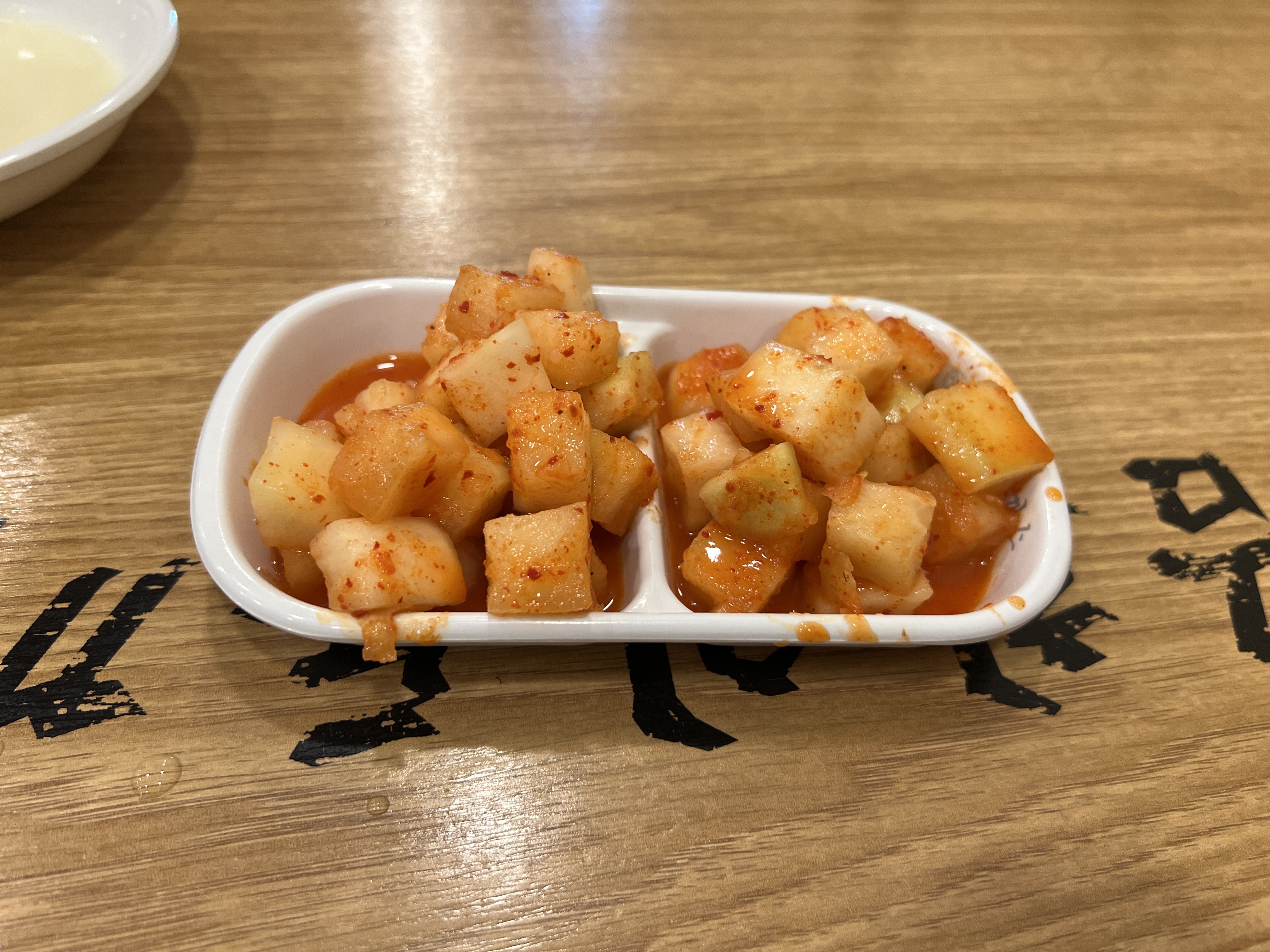 리필바에는 깍두기가 있는데, 깍두기가 정말 맛있는 편입니다. 돈까스집에서 깍두기는 흔히 있는 사이드 메뉴인데, 은근히 맛 없게 내놓는 집이 많거든요. 아니면 대충 단무지로 때우거나요 ㅎㅎ 근데 여기는 깍두기가 꽤나 맛있어서 리필을 할 정도로 많이 먹었어요.