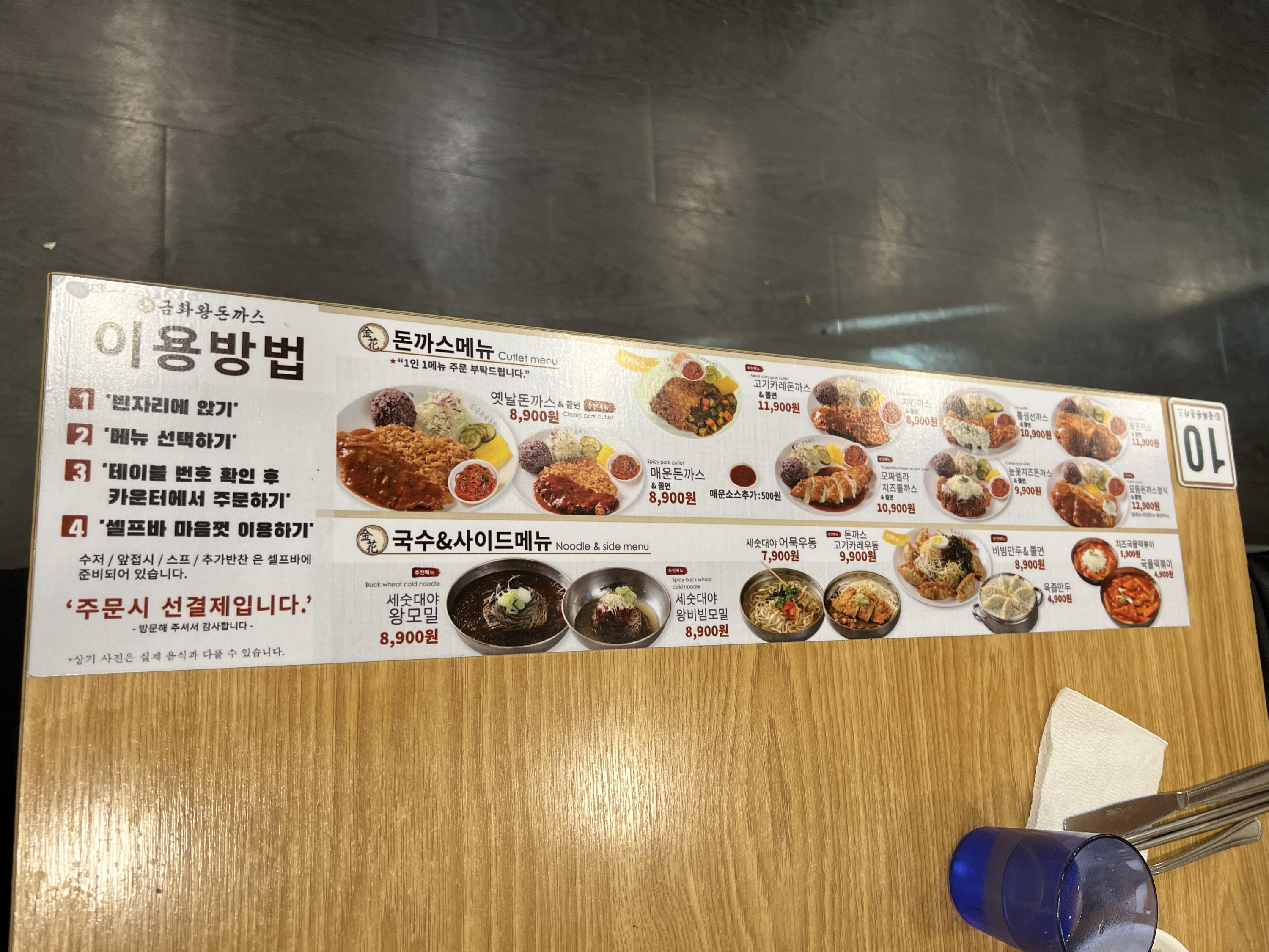 매장은 생각보다 컸습니다. 앉을 자리는 많아 보였고요. 사람이 비교적 많아서 사진은 못 찍어서 아쉽네요ㅠㅠ 그리고 매장 이용 방법은 빈자리에 앉고, 메뉴 선택하고, 테이블 번호 확인 후 카운터에서 주문하면 됩니다. 반찬은 셀프바를 이용하시면 되고요. 테이블마다 부착된 안내문을 읽어 보시면 매장 이용 방법과 메뉴, 가격이 모두 나와 있습니다. 불편한 점 없이 매우 깔끔한 매장 이용 형태였습니다.