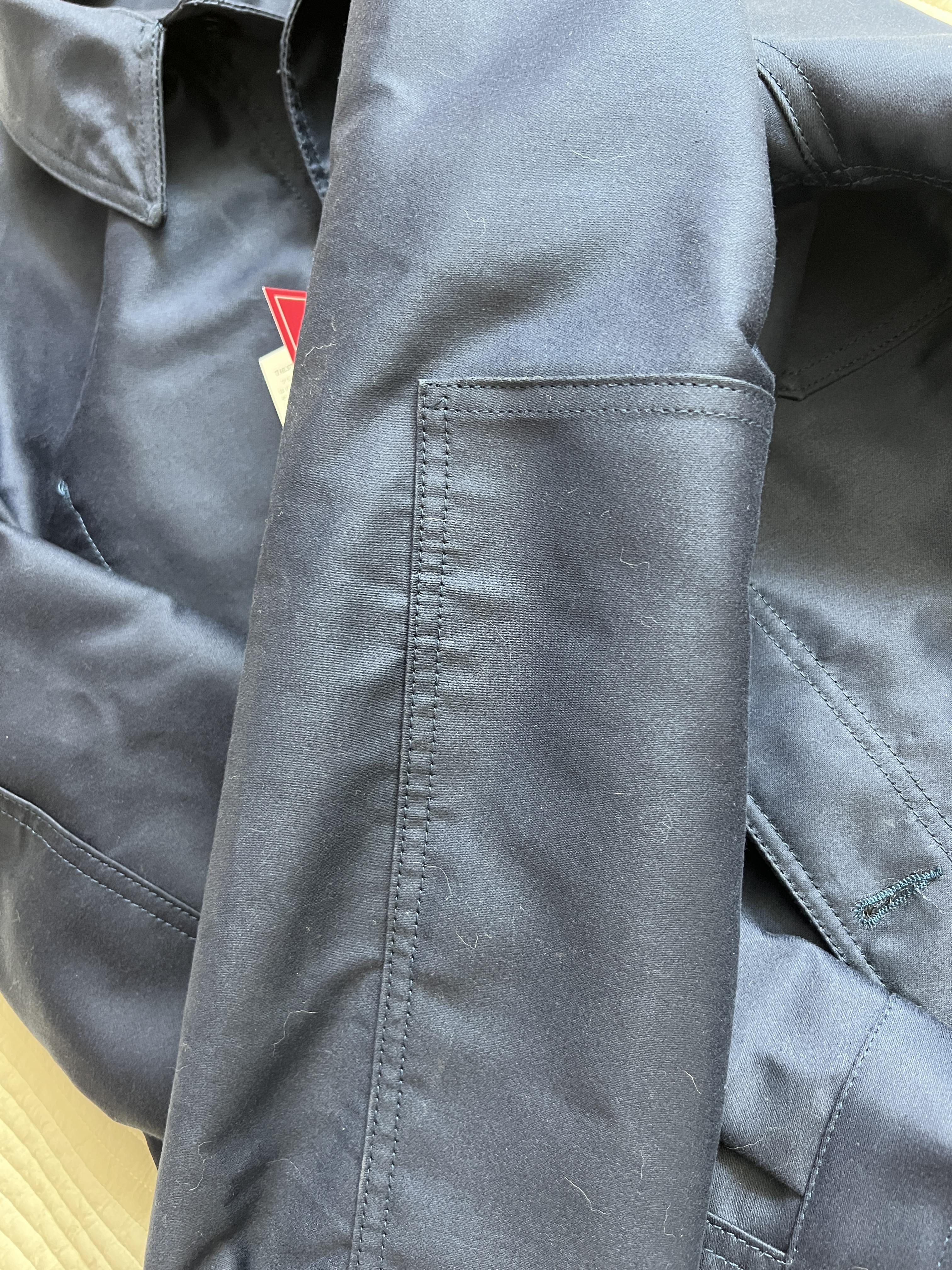 실제 색감은 이 정도구요. 다크네이비와 네이비의 중간 정도 느낌입니다. 제가 이 브랜드를 선택한 이유 중에 하나가 찡한 네이비를 안 좋아합니다. 왜냐하면 네이비가 은근히 코디하기가 어렵거든요. 그래서 베트라 등 워크자켓으로 유명한 타 브랜드를 제치고, 가장 톤다운되면서 어두워 보이는 르 트라바이유 갈리스 워크자켓으로 고른 겁니다.
