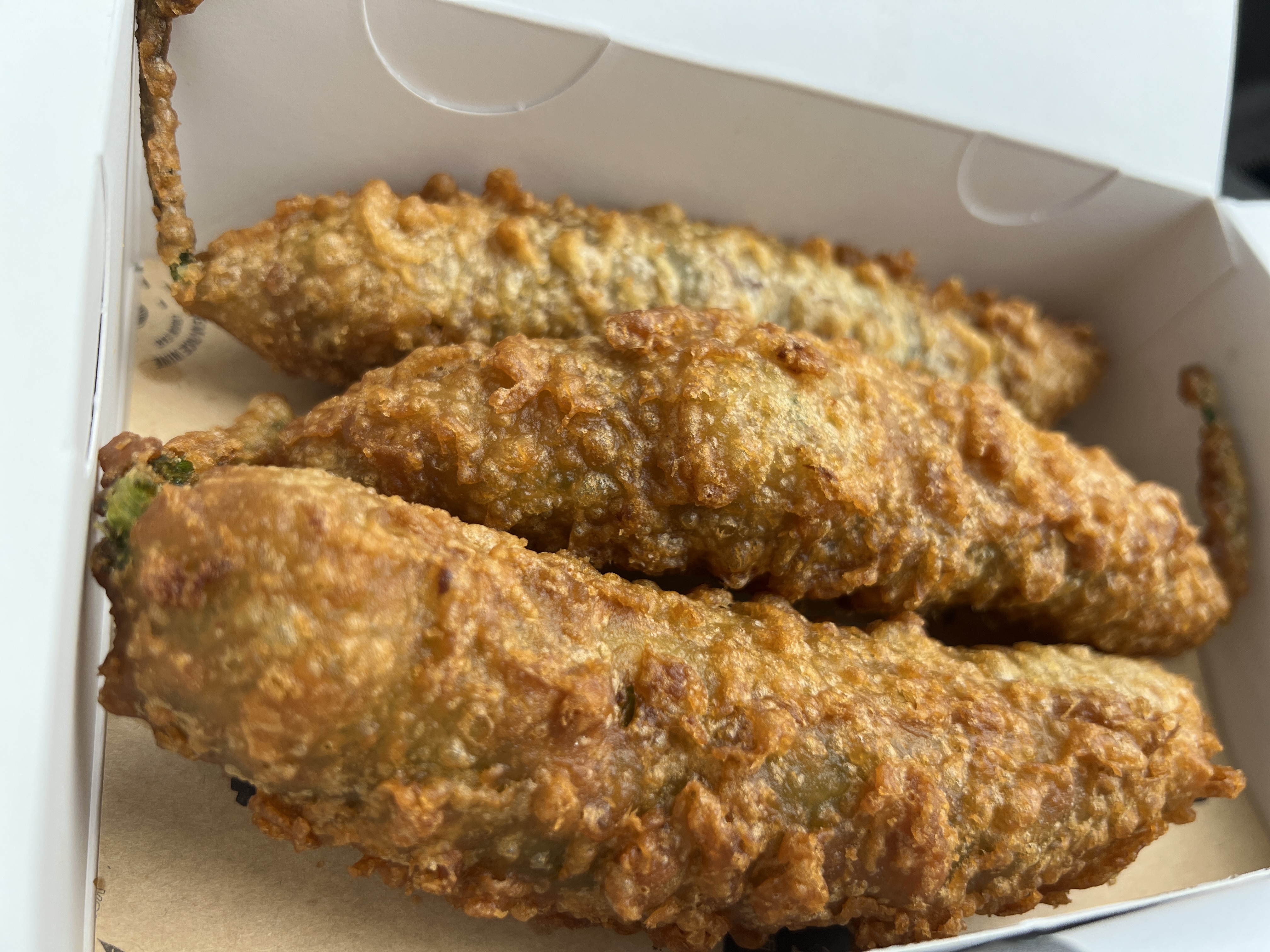 떡갈비 4개에 14,000원 / 고추튀김 3개에 11,000원입니다. 곁들여 먹을 소스류 2,000원 / 식혜 3,000원입니다. 저는 이 날 다른 데서도 주문한지라 고추튀김만 주문해봤구요. 매장 전용 테이블이 없어서 무조건 테이크아웃 형태로 제공되구요. 이렇게 이쁜 포장용기에 담아서 주십니다.