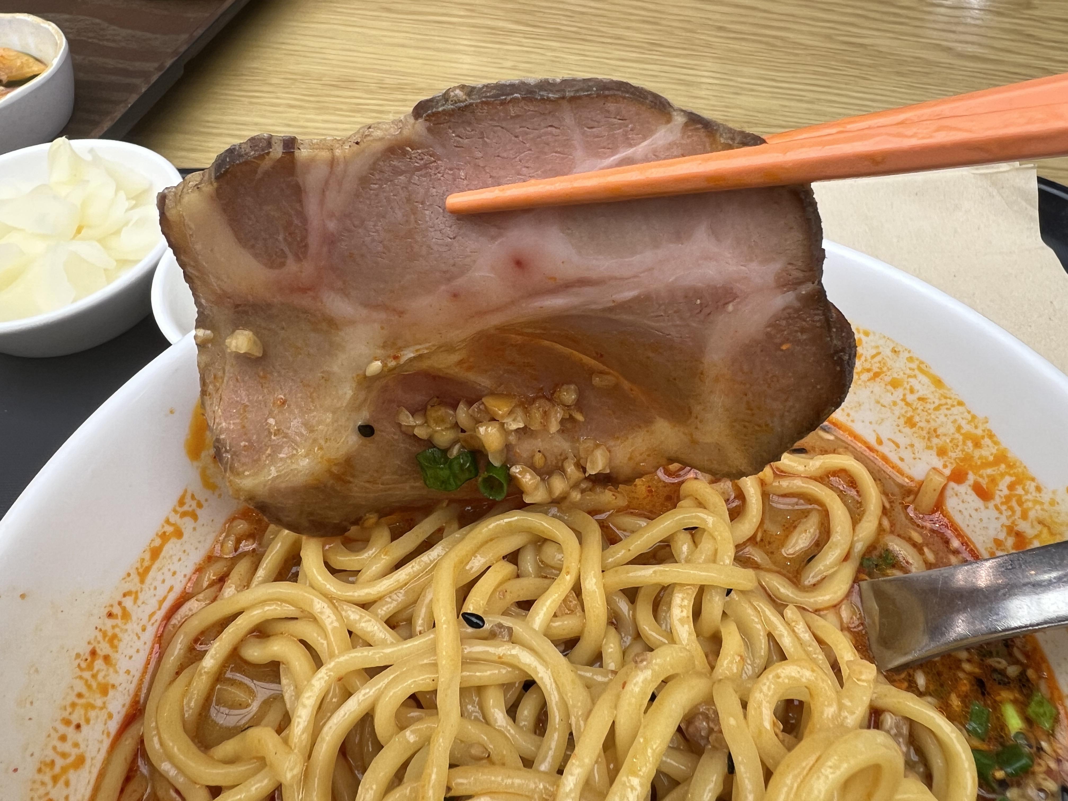 살짝 덜 익어 보이는 차슈(?)지만 막상 먹으면 맛있어요. 아마 탄탄면 육수도 이 고기로 낸 것 아닐까 싶은데, 국물이 다소 기름진 것에 비해서 차슈는 꽤나 담백한 살코기입니다. 다음에 방문하면 저는 무조건 차슈 추가로 한번 더 먹어볼 생각이에요.