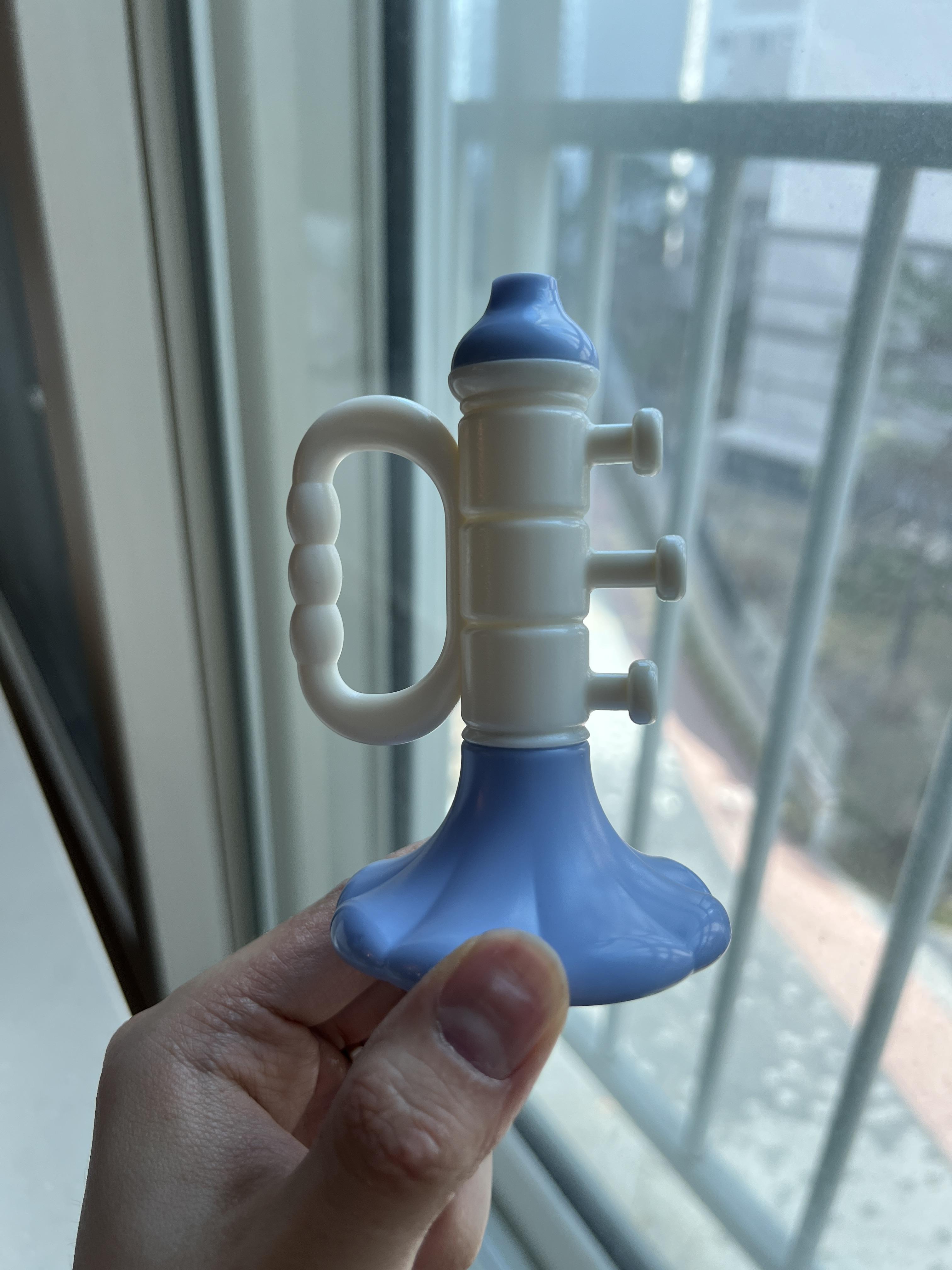 이건 앙증맞게 생긴 트럼펫 형태의 딸랑이부터 시작해서요.