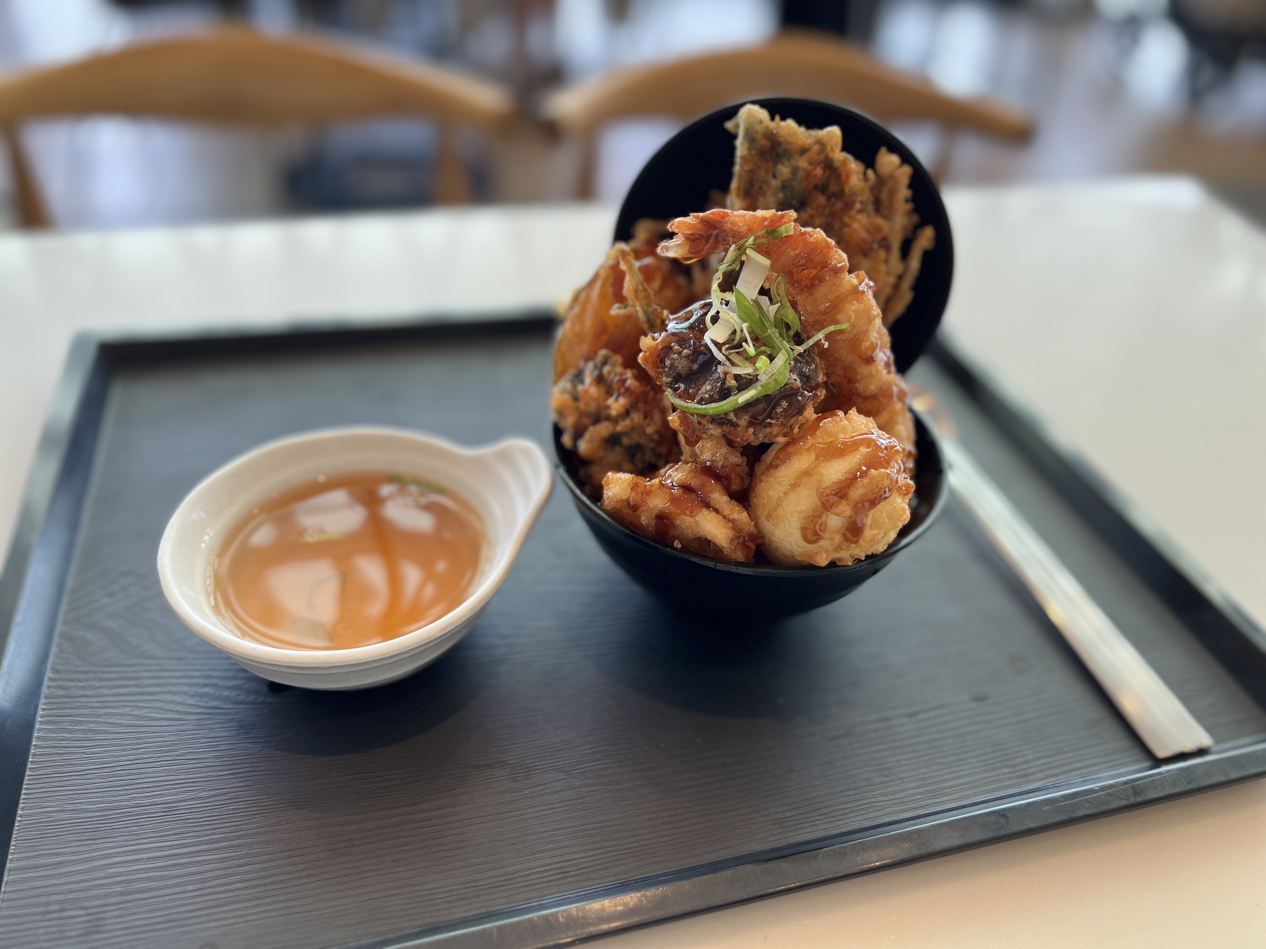 텐동은 일본식으로 바삭하게 튀겨낸 튀김과 간장소스에 뿌려진 밥과 같이 먹는 요리로, 맛없없의 대명사인 튀김과 간장밥이 만나서 호불호가 거의 없습니다. 느끼한 걸 싫어하시거나 다이어터 분들은 거르시긴 하셔야 되지만, 대체로 맛있게 먹을 수 있는 음식입니다.