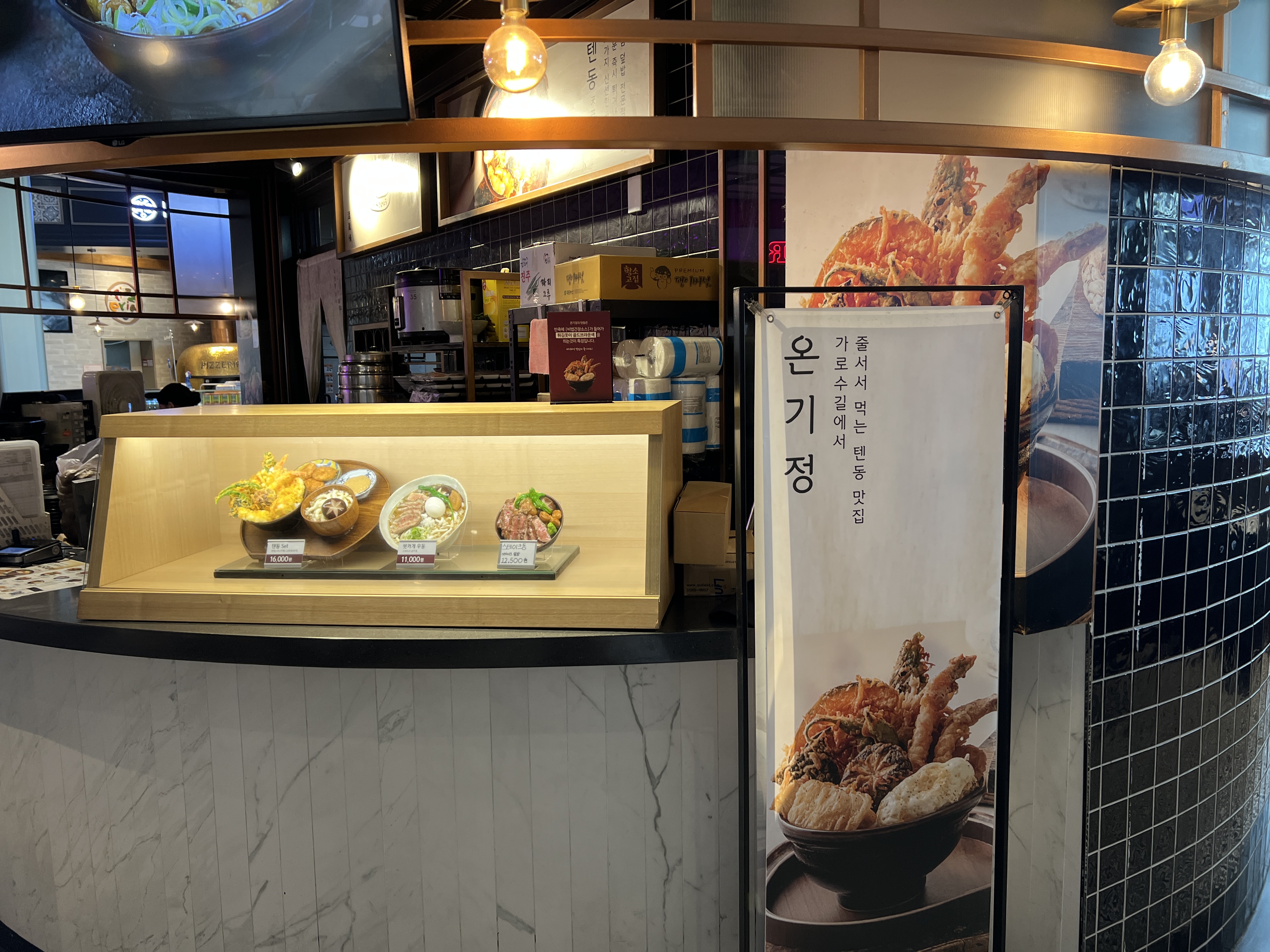 가게 앞 큼지막한 화면에 음식 사진과 가격이 표출이 되고 있습니다. 앞에도 친절하게 음식 모형도 있어서 주문자 입장에서 혼선이 없도록 되어 있어서 좋았습니다.
