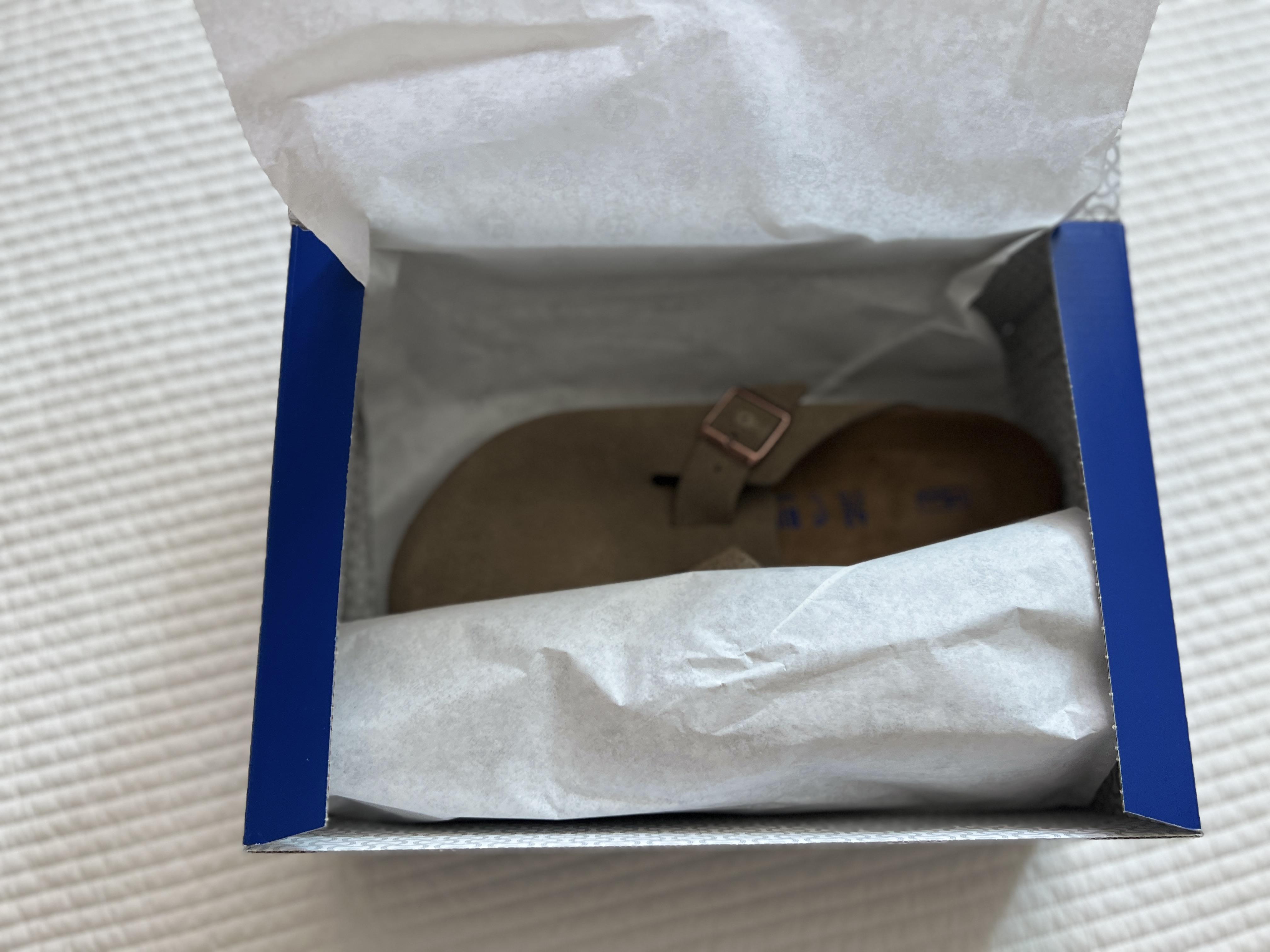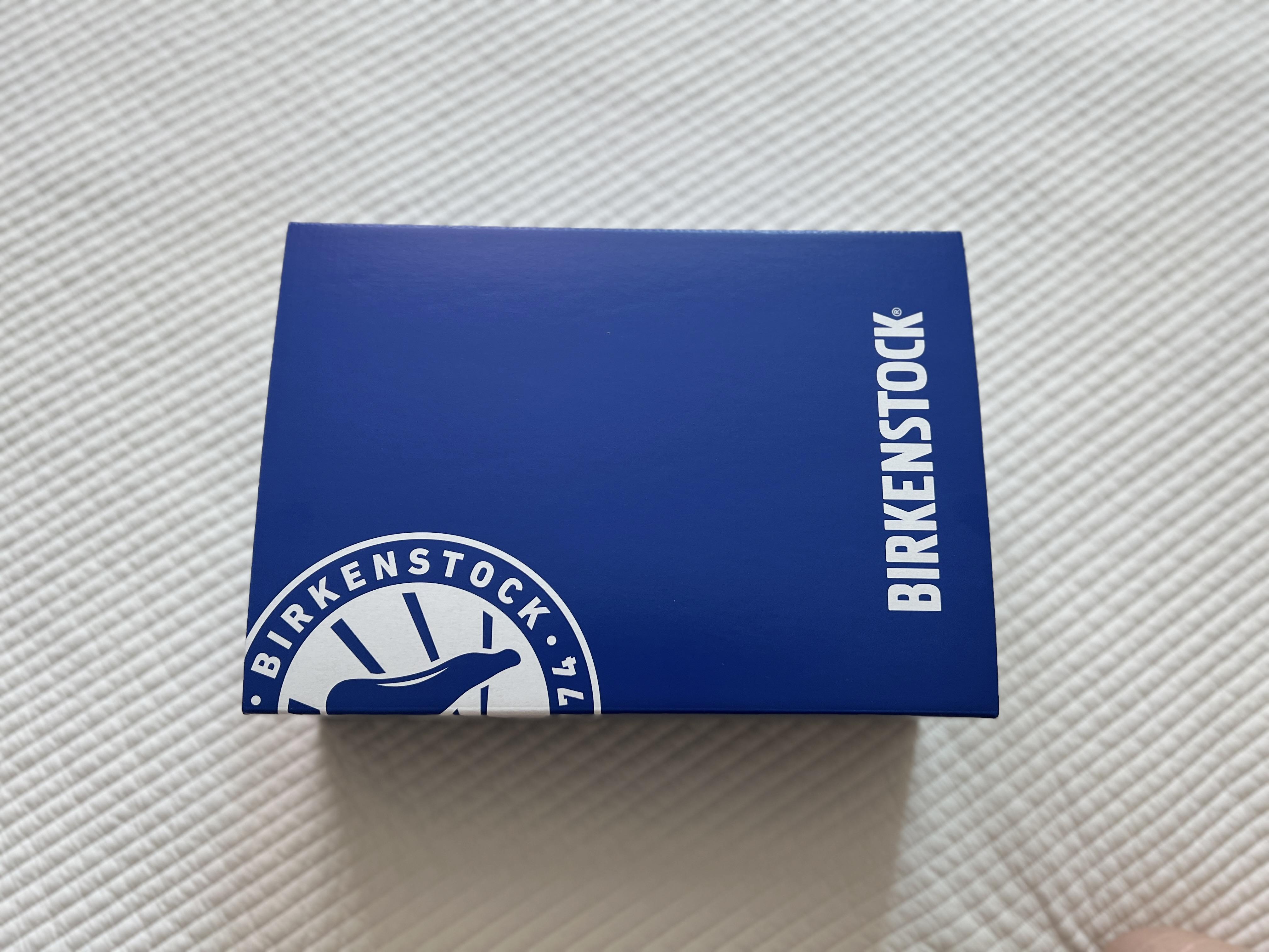 버켄스탁 고유의 신발 박스인 쨍한 파란색 박스가 인상적이구요. EU 42 사이즈, UK 8로 표기되어 있는데요. 즉, 우리나라 270 사이즈로 보시면 됩니다.