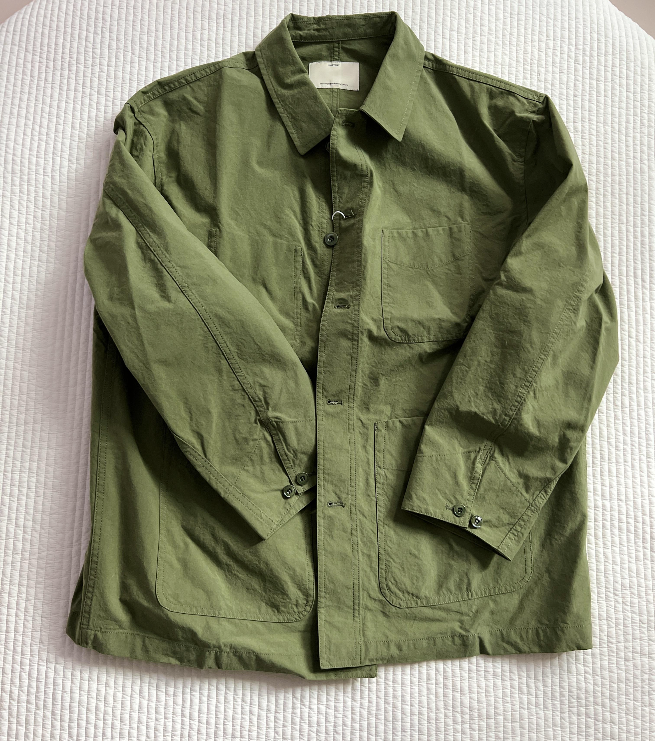 나일론 워크자켓인데, 나일론 소재감이라고 믿기지 않을 정도로.. 신기한 재질감입니다. 나일론이라 하길래 굉장히 바스락 거리며 스포티한 소재인 줄 알았는데, 코튼 소재의 재킷 느낌이 강합니다.