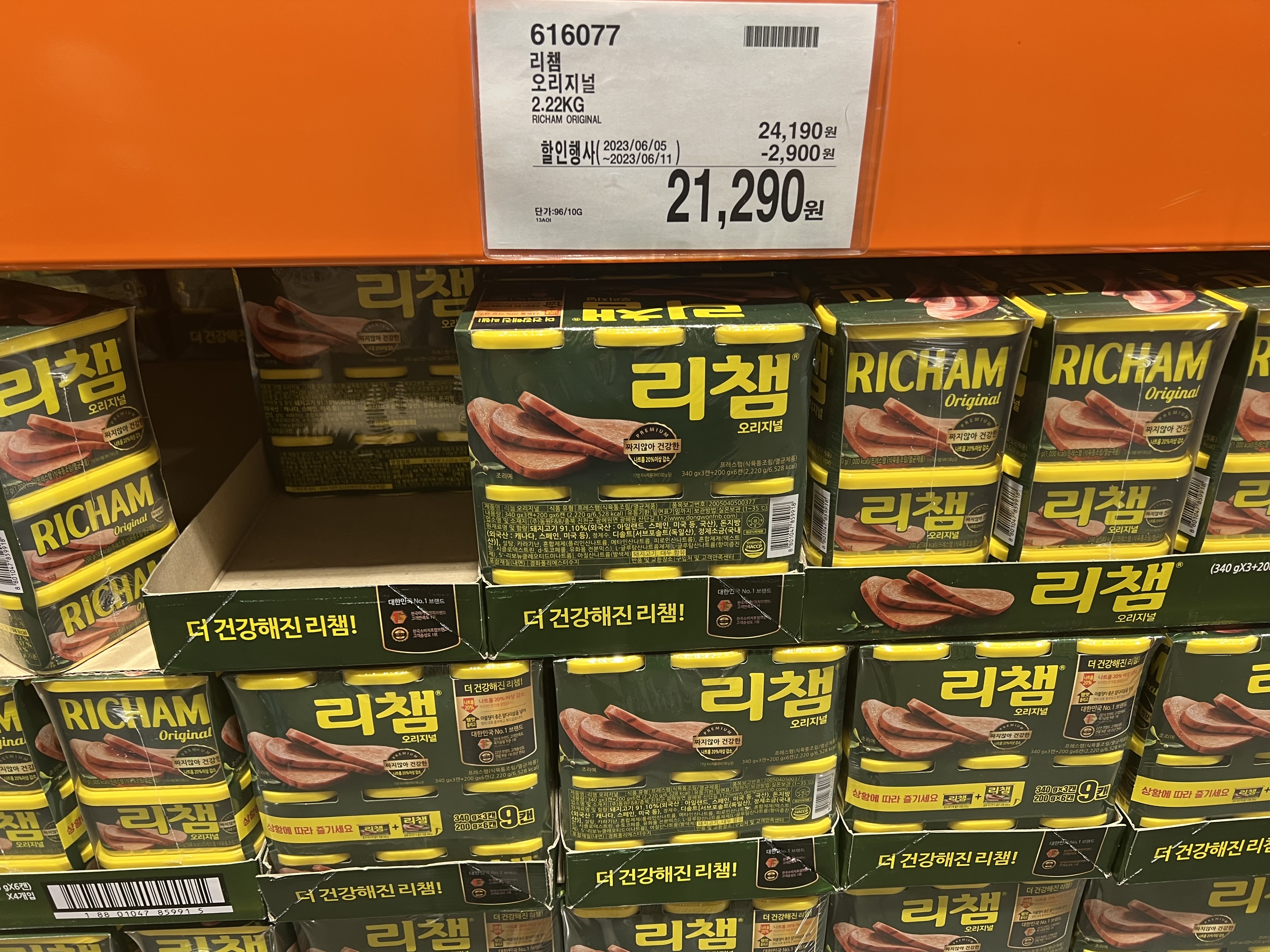 집에 늘 상비해 놓고 잘 먹는 리챔입니다. 가만 보면 리챔이나 스팸은 정가 주고 사면 억울할 만큼 세일을 자주하긴 하네요. 리챔과 스팸은 절대 정가주고 사지 마세요!