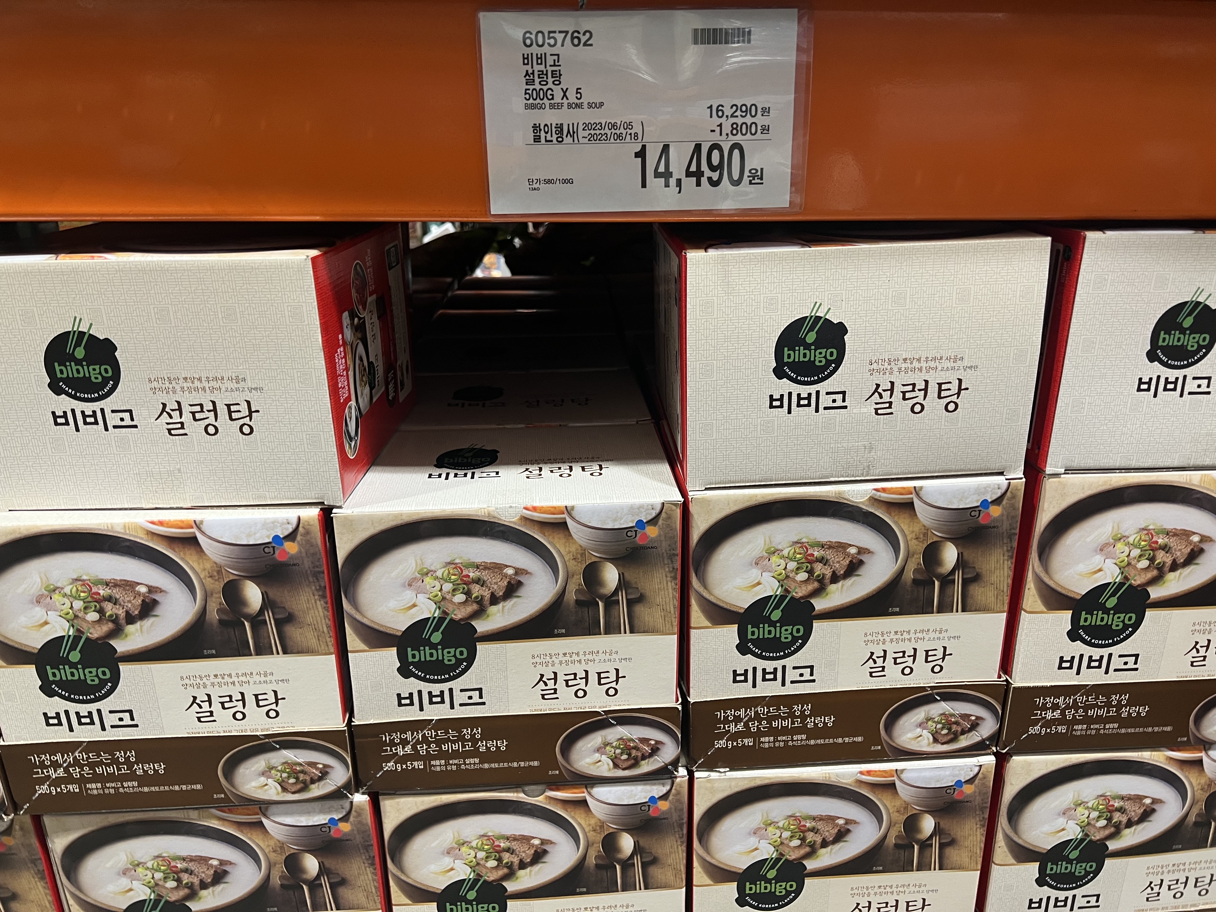 뽀얀 육수가 맛있어 보이는 비비고 사골곰탕진도 할인 중이에요. 여름철 몸보신 보양식에 관심들이 많아져서 인지, 뭔가 사골육수와 설렁탕 종류 등이 많이 할인 중이네요.