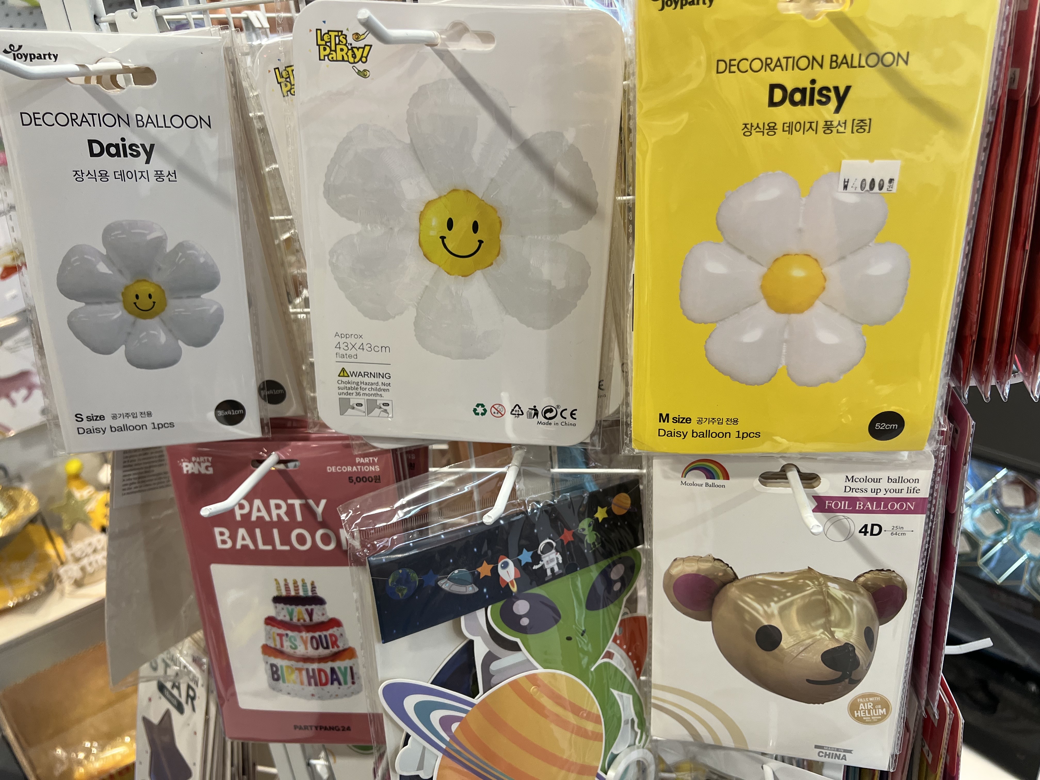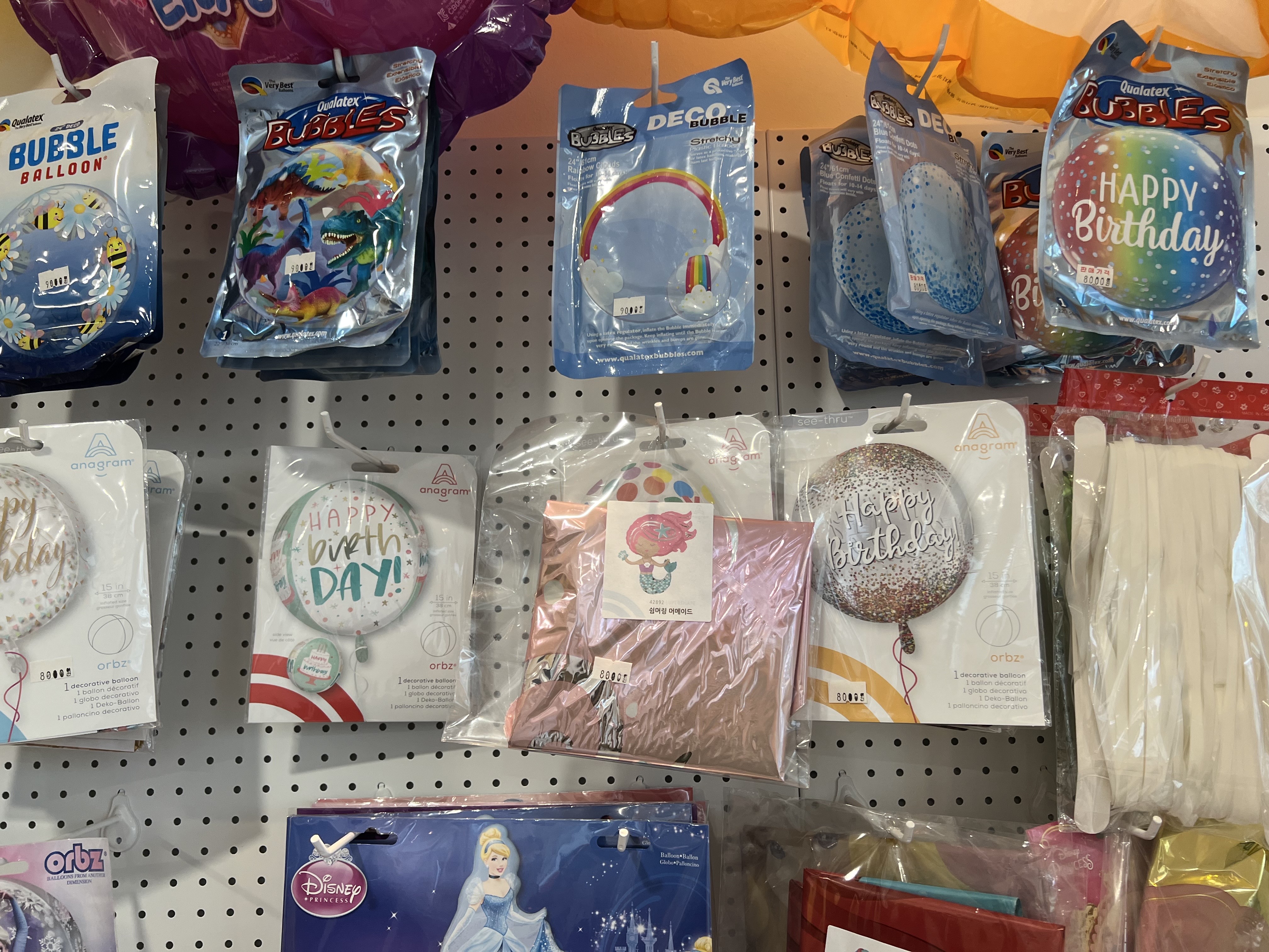 귀여운 헬륨 풍선들이 다양하게 진열되어 있어요. 보자마자 구입하고 싶은 충동이 뿜뿜인데 종류가 워낙 많으니까 또 못 고르겠더라고요. 인터넷으로 주문하는 것보다 가격도 매우 합리적으로 느껴졌어요. 다음번에 기념일에는 인터넷 말고 여기로 바로 방문할 생각입니다.