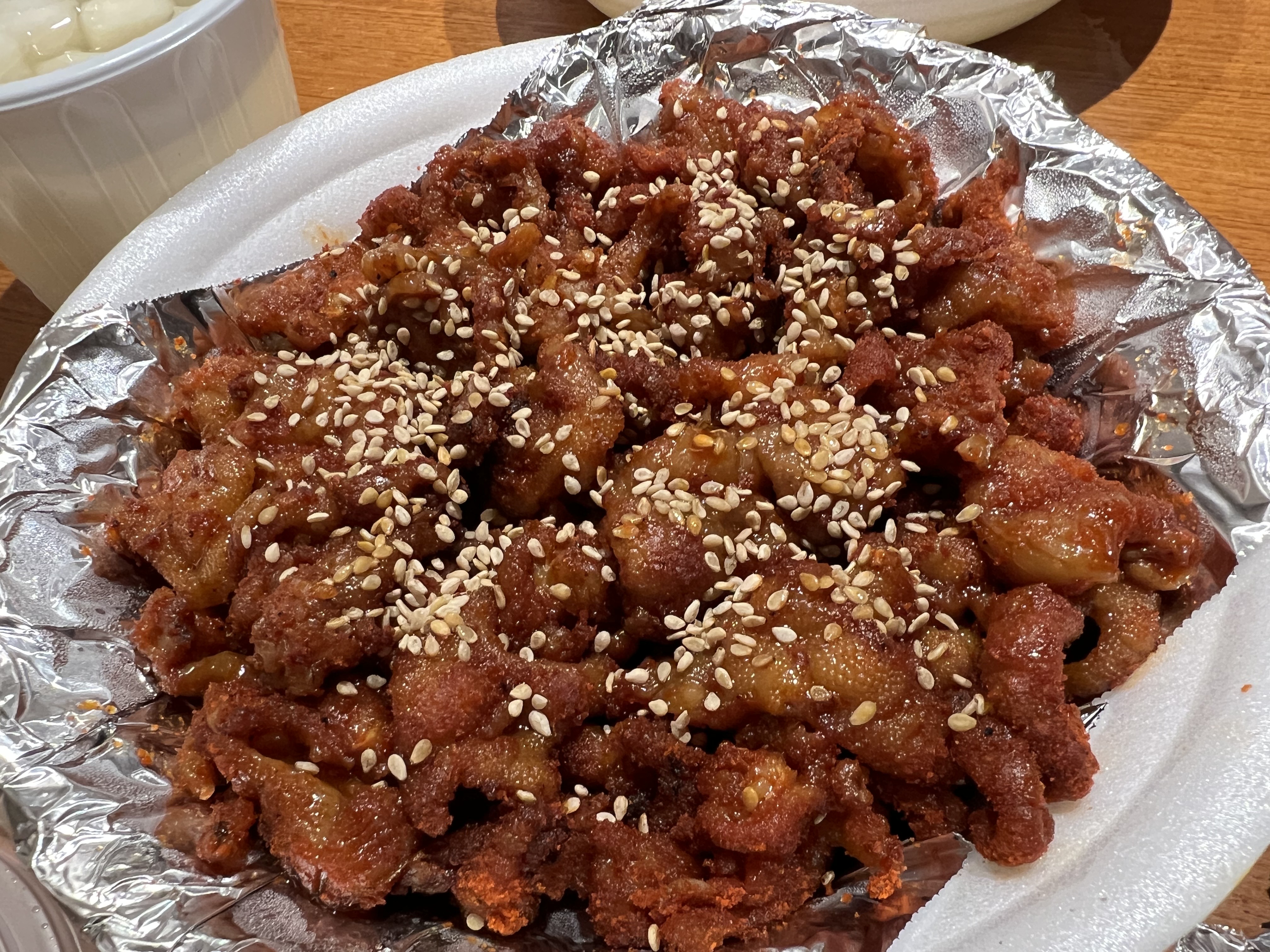 뼈 없는 닭발도 주문해 보았어요. 개인적인 느낌으로는 닭날개의 압승입니다. 닭발이 메인일 것 같은 느낌의 가게지만, 여긴 정말 닭날개가 너무 맛있어서 닭발이 사이드메뉴인 느낌이에요. 물론 둘 다 매우 맛있는 메뉴지만, 저는 닭날개가 압승입니다. 춘천 땡촌닭발 닭날개 너무 맛있어요.