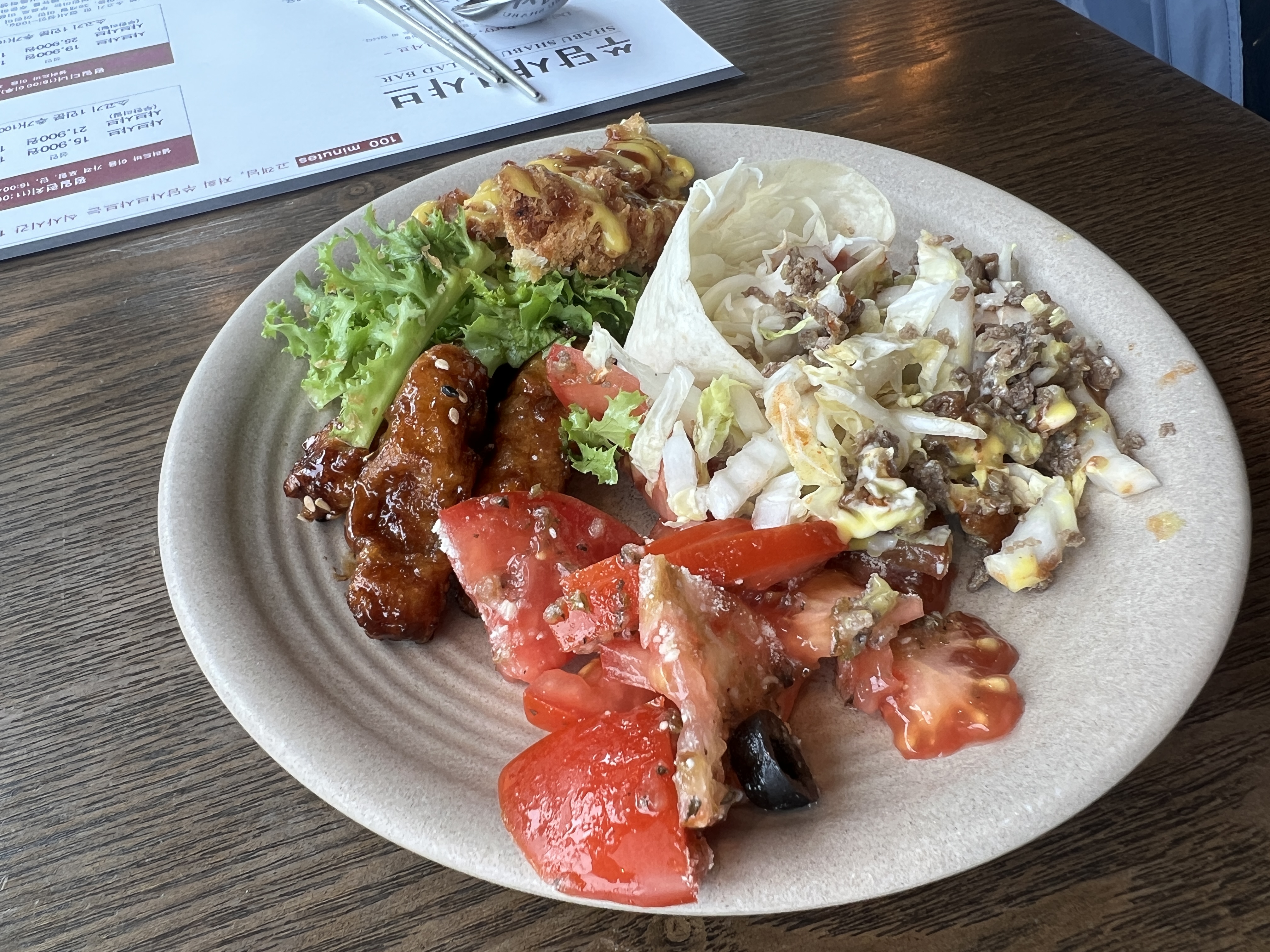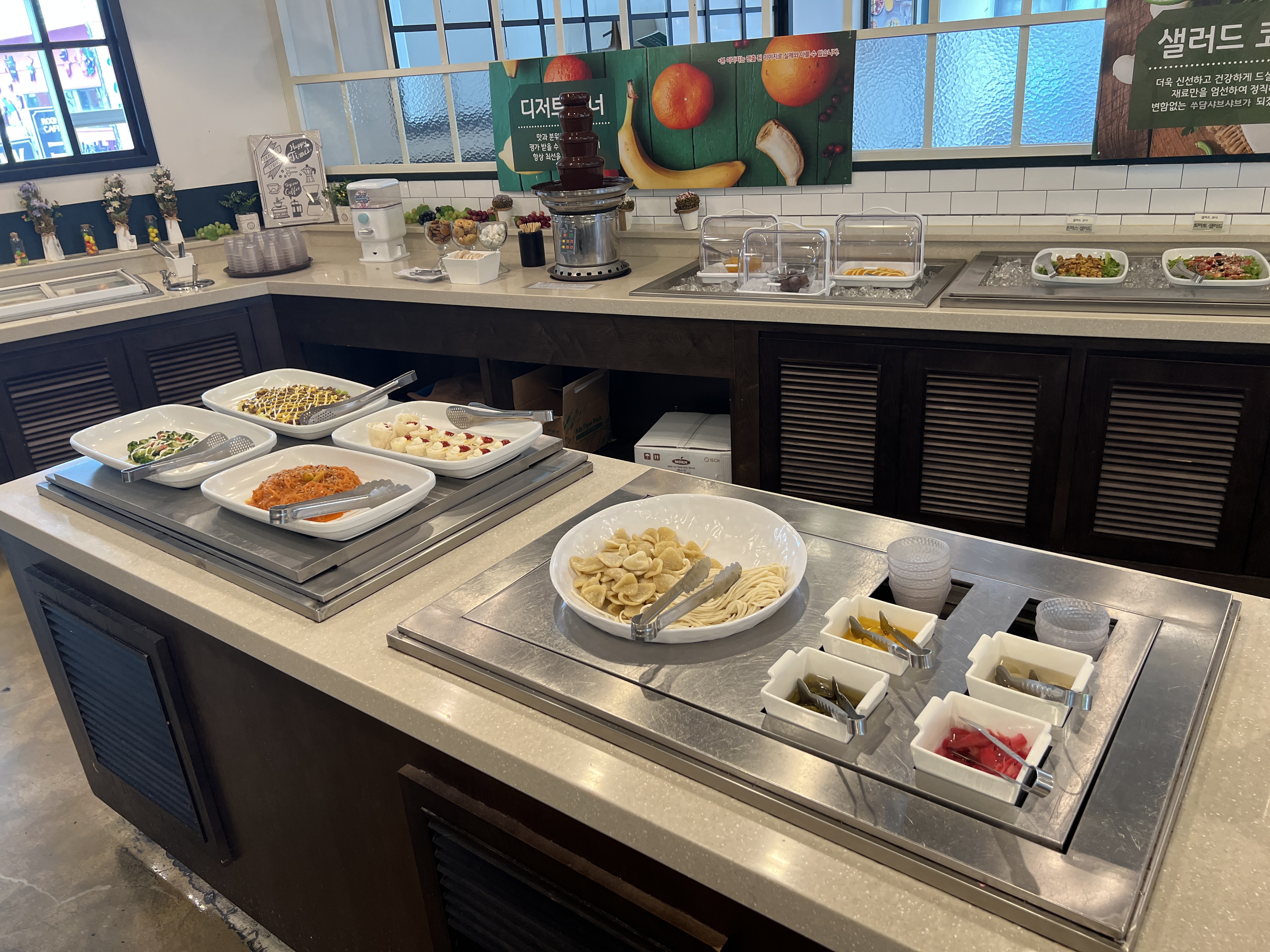 이렇게 푸짐하게 샐러드바도 이용해주면서 뱃속을 사전 예열을 해주고요.