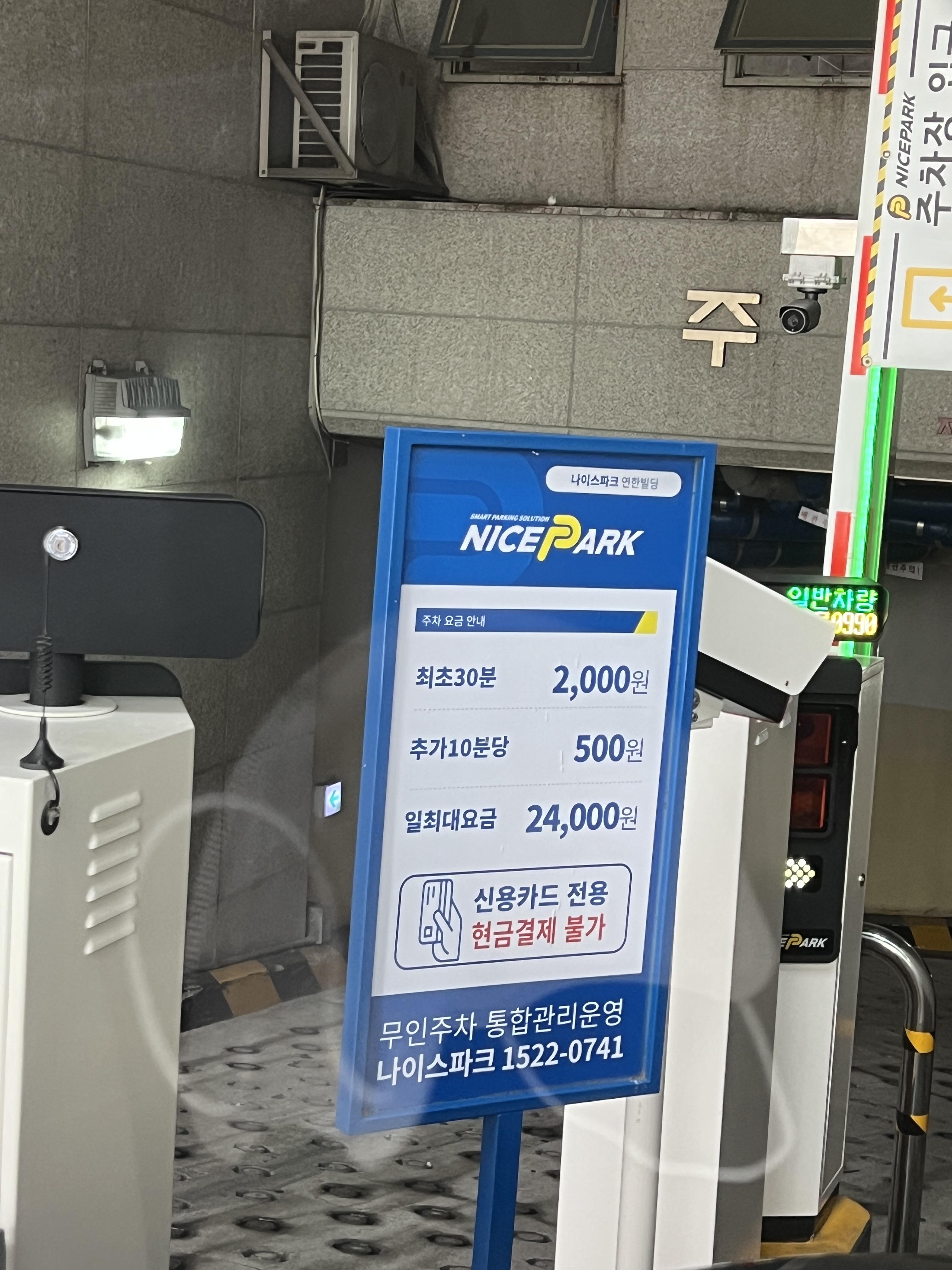 쑤담샤브샤브가 위치한 건물 지하주차장 주차가격입니다. 30분에 2,000원에 추가 10분당 500원입니다. 일 최대요금 24,000원으로 주차요금 자체가 비싸지 않아서 기본 1시간 무료주차 외에 오바되는 타임에 대한 주차비 부담은 적습니다.