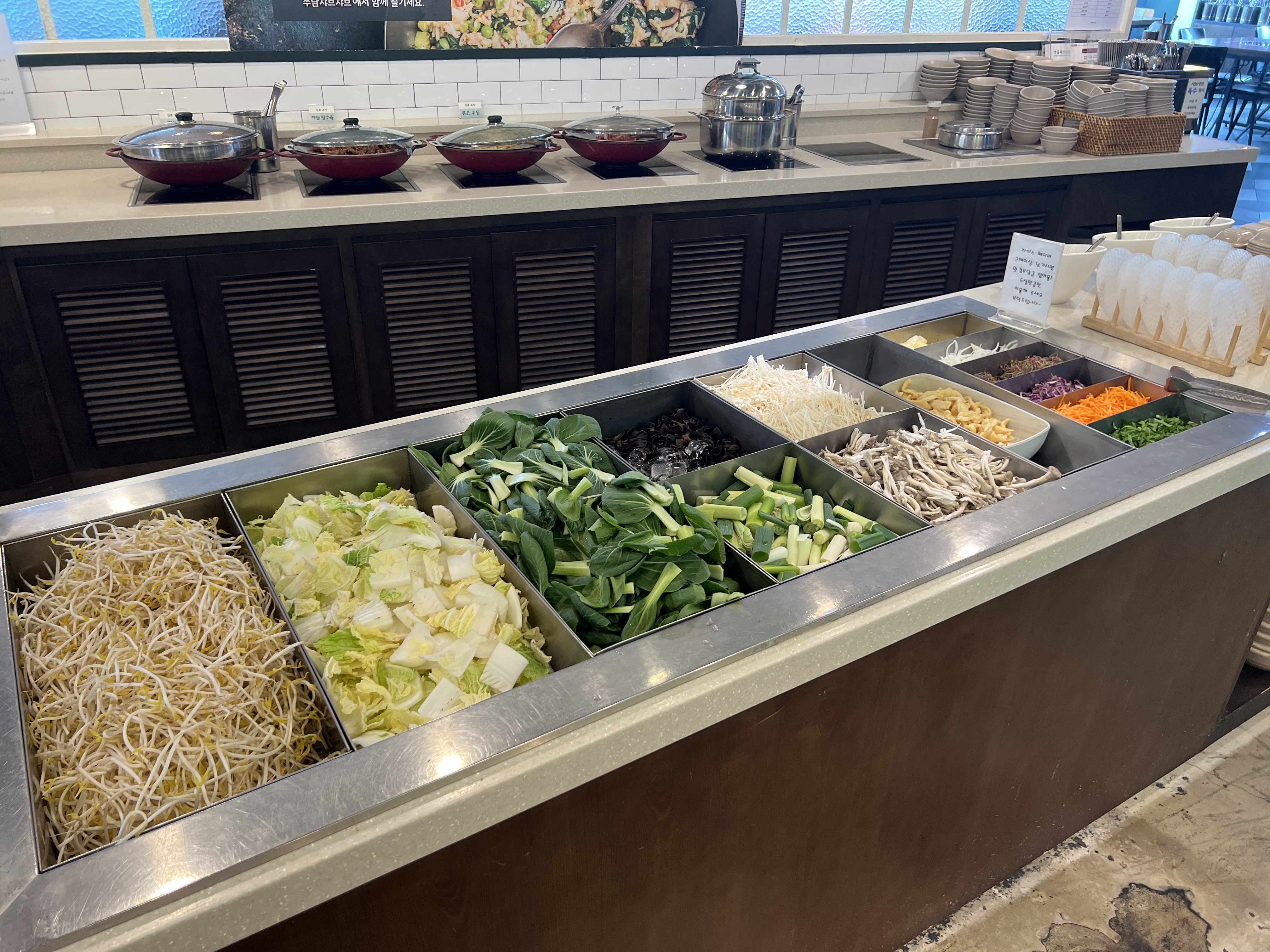 쑤담샤브샤브는 기본이든 고기 무한리필이든 이렇게 다양한 샐러드바를 무제한 이용이 가능합니다. 샐러드바가 풍성하게 있는데, 진짜 행복하더라고요 ㅠㅠ