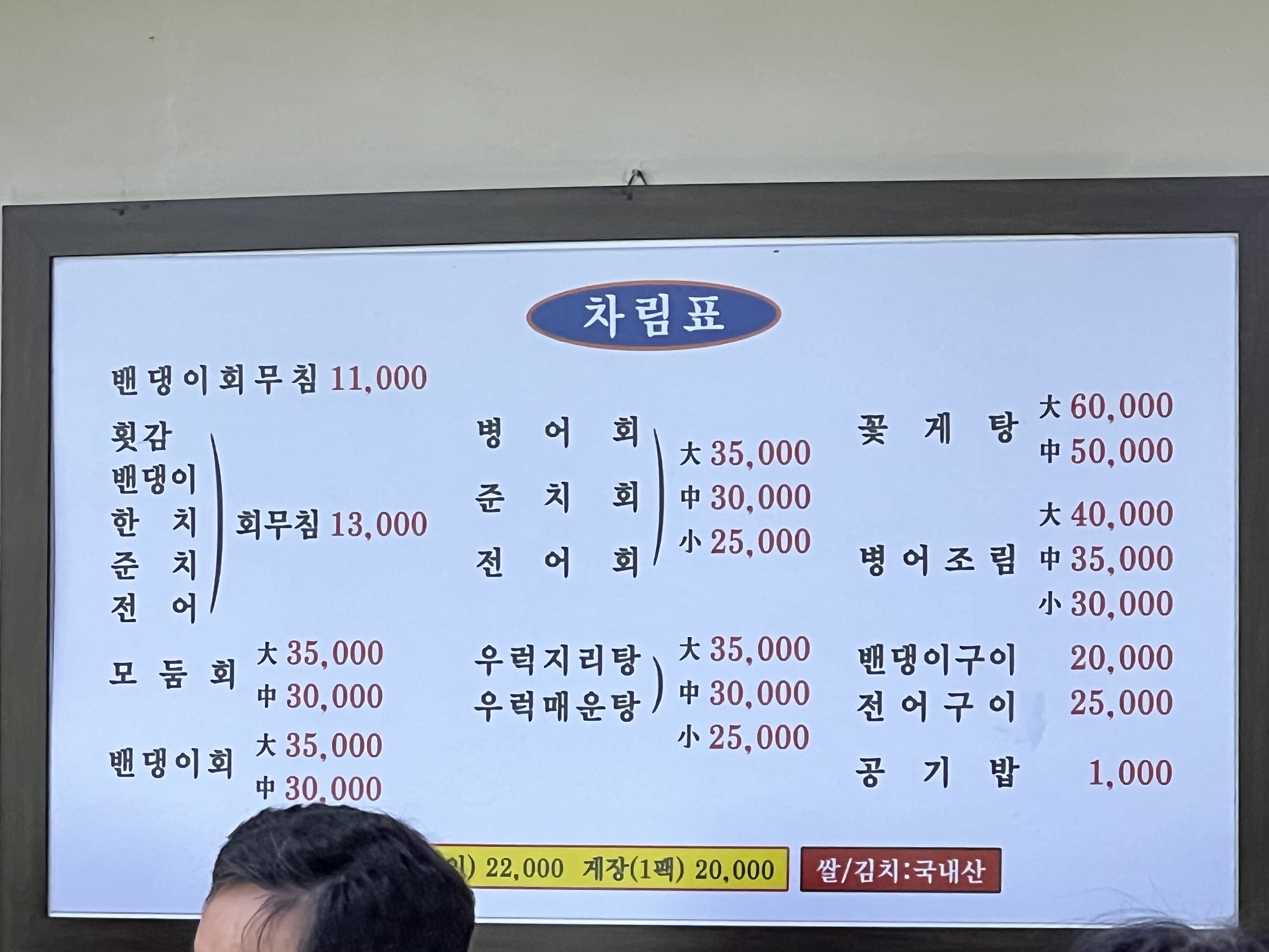 원재료 대부분이 국내산이네요. 다만 메인인 밴댕이가 의외로 중국산이긴 하네요. 그래도 나머지 회들은 국내산이랍니다.