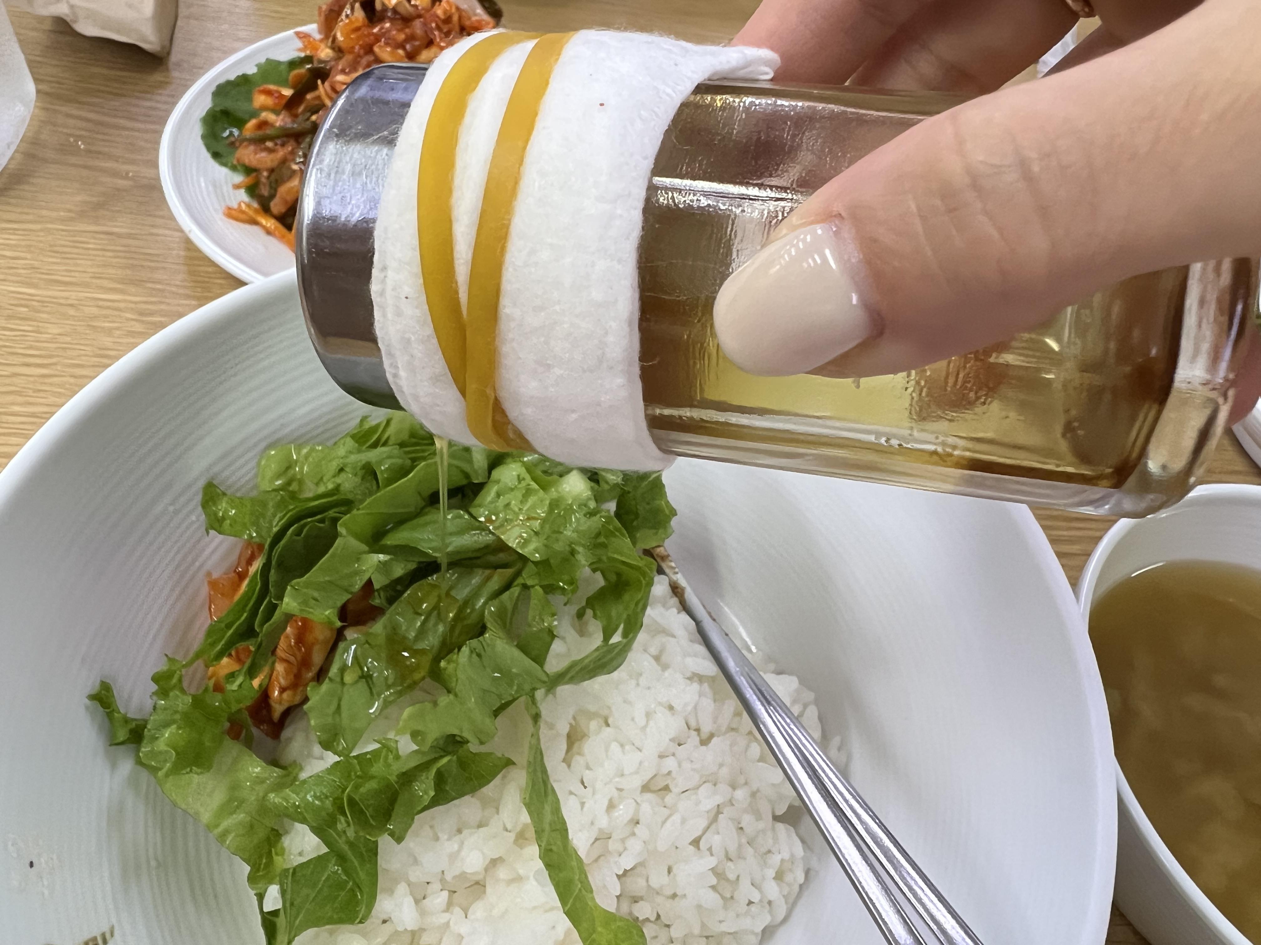 나름 방문 전 검색에서 커다란 상추쌈이 나오는 줄 알았는데 막상 와보니 비빔밥용 야채로 잘려서 나오더라고요(?) 당근이나 양배추, 양파 등 더 다양한 야채가 있었으면 좋았을 것 같습니다.