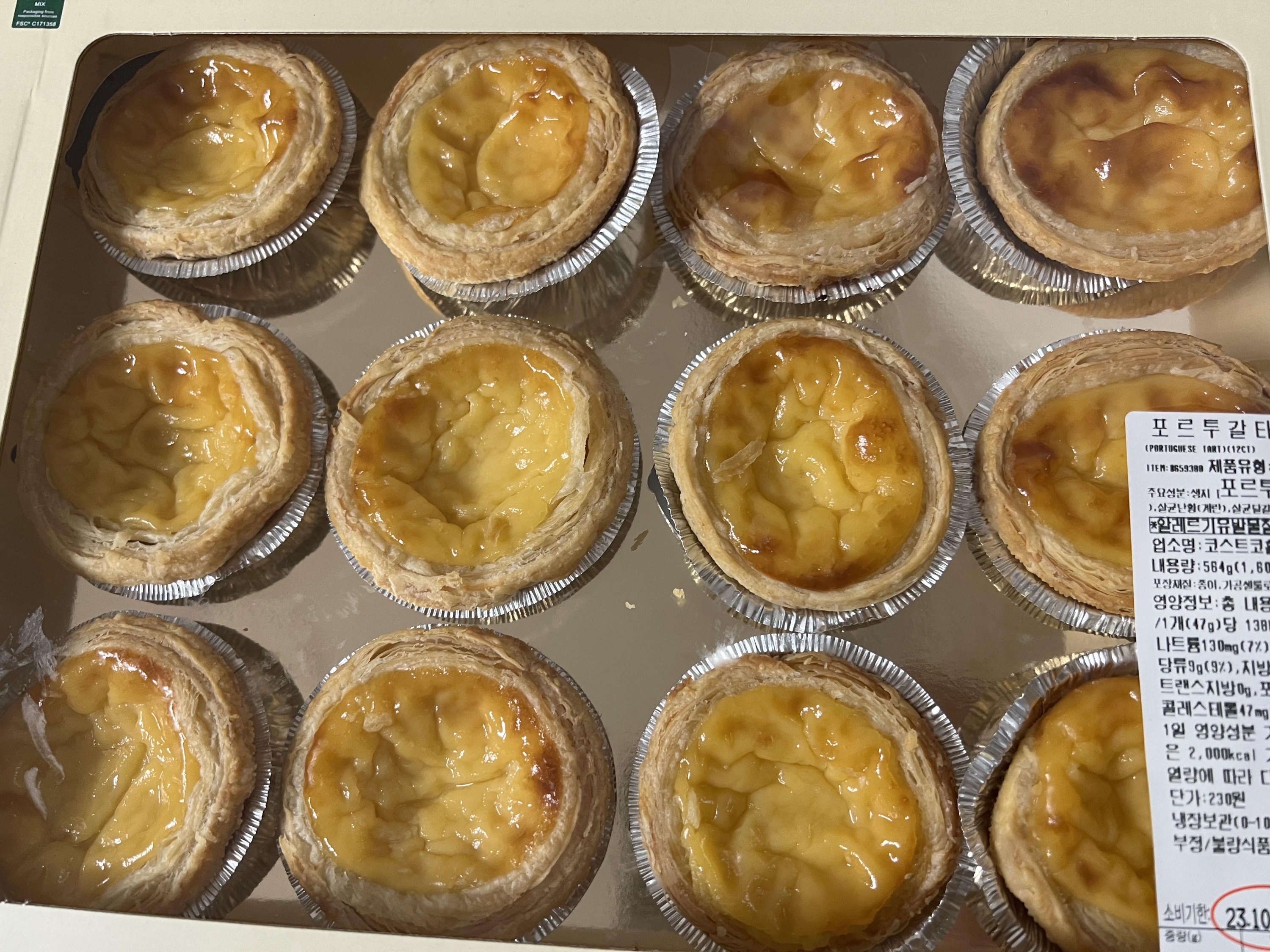 문제의 포르투갈 타르트입니다. 코스트코에서 이전에 구매했던 에그타르트는 그냥 쏘쏘였는데, 이건 왜 미친 맛이죠..? 코스트코 일 너무 잘하는 거 아닙니까..?