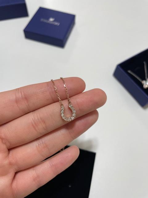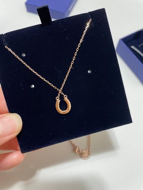 로즈골드톤에 화이트 스와로브스키를 박아서 엄청 반짝거려요. 하지만 화려하다는 느낌보다는 캐주얼한 느낌이 강해요. 이 전에 소개해드렸던 스완 목걸이는 흰 끼가 많이 도는 목걸이라 자기주장이 강한 느낌이었는데 말발굽 목걸이는 동양인 피부색과 잘 어울려서 원래 있던 목걸이같이 느껴져요. 디자인은 심플하지만 포인트가 되는 느낌이랄까요?