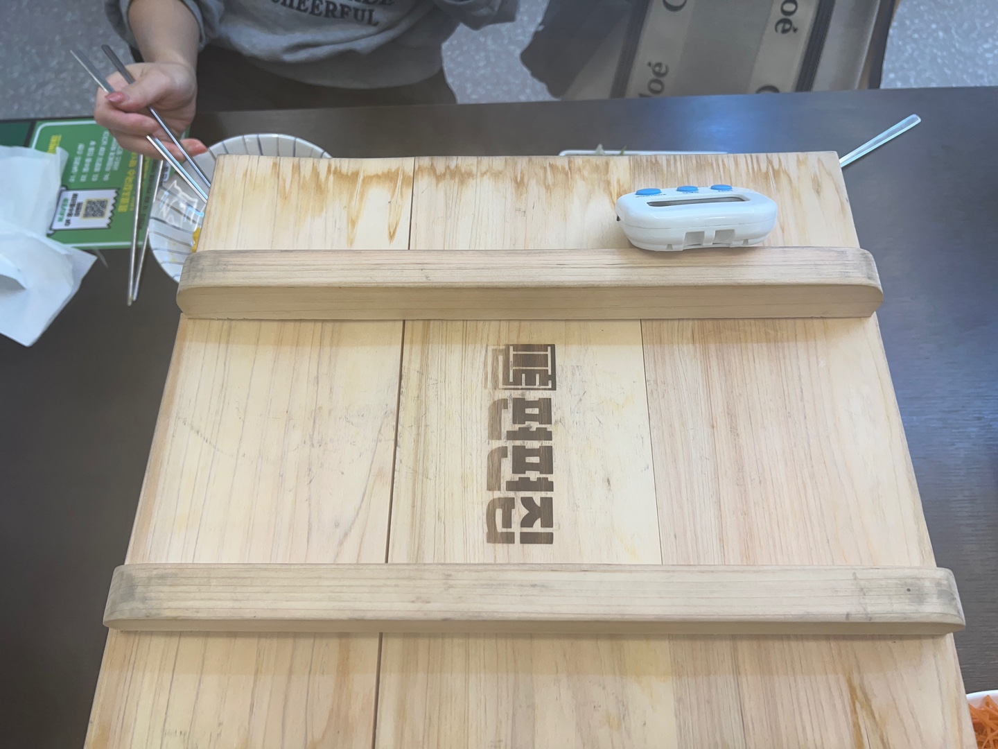 자리마다 인덕션이 있어서 이렇게 편백나무찜기를 올려서 15분 카운트다운 후 드시면 됩니다.