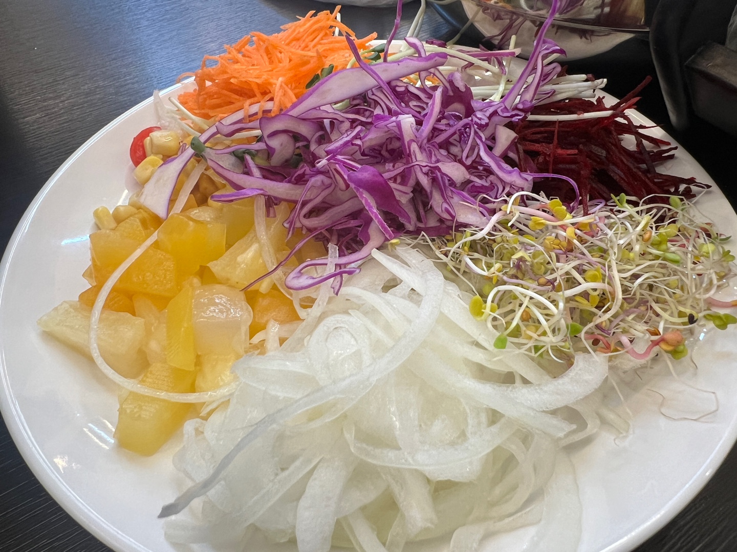 샐러드바에 신선한 야채가 많았습니다. 샤브샤브를 비롯해 월남쌈 채소까지 구비가 잘 되어 있었습니다. 가짓수는 많지 않았지만 그래도 있을 야채와 재료는 다 있더라고요.