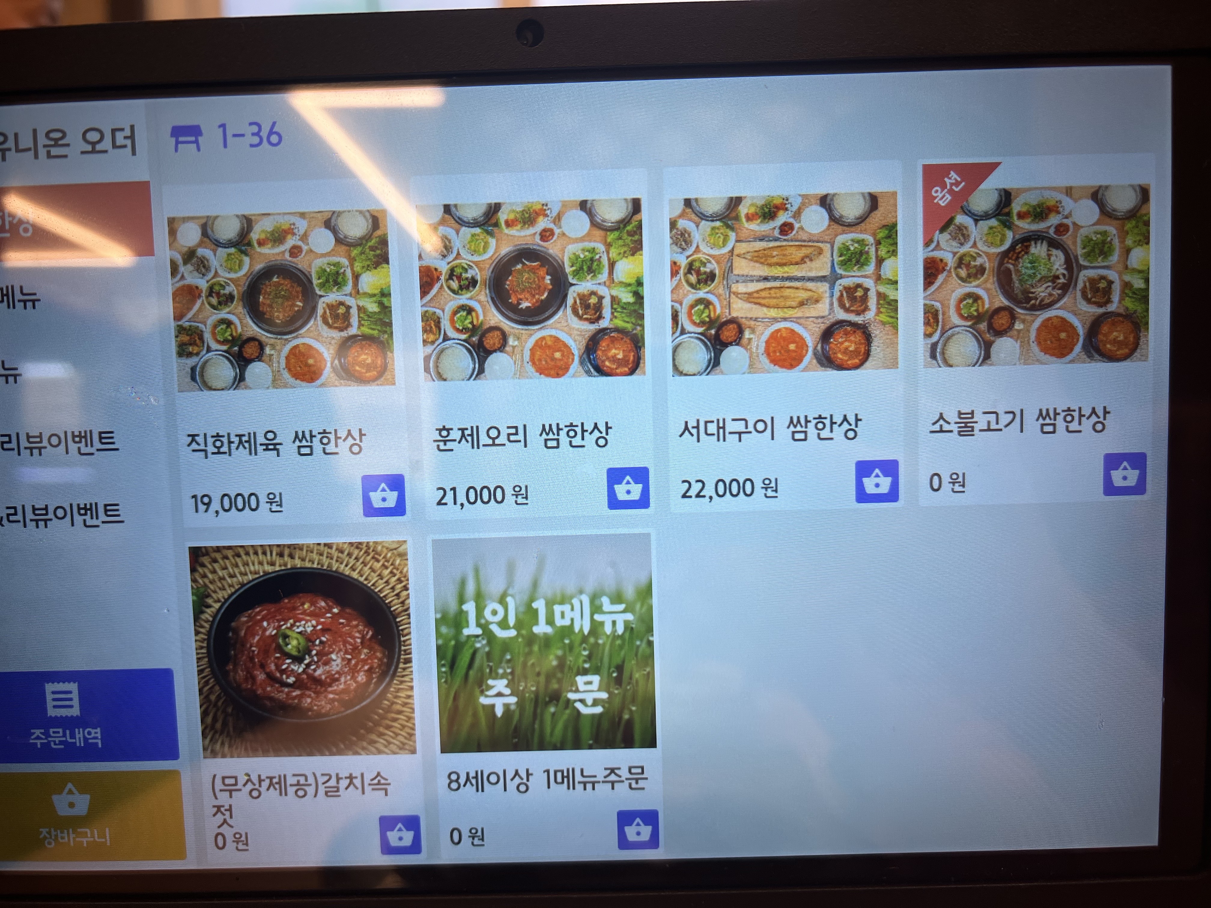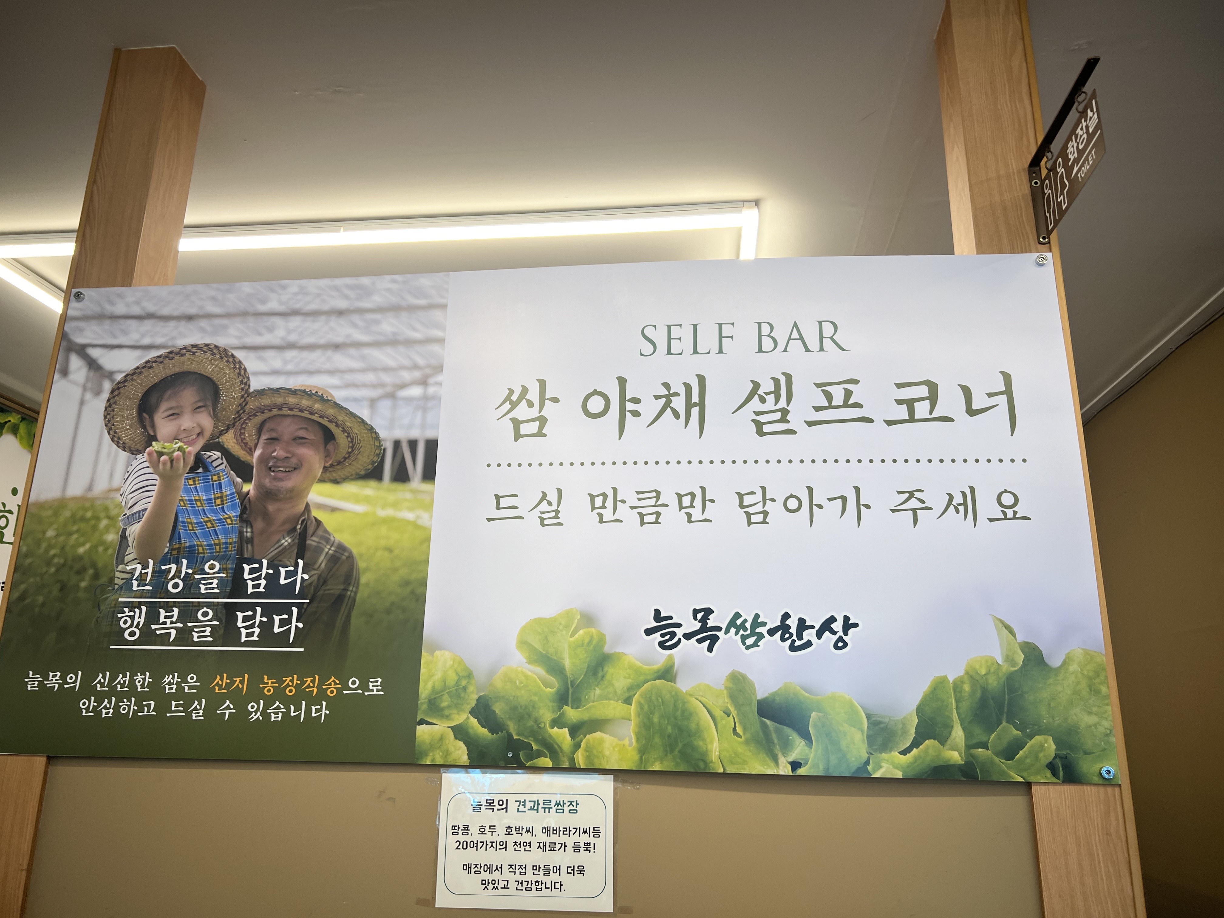 쌈밥집에서 야채 리필할 때 눈치 보이는 경우가 있는데, 여기는 쌈이 셀프코너로 마련되어 있어서 마음껏 편하게 먹을 수 있어요. 사람이 거의 만석이었는데도 쌈 리필이 그래도 빈 곳 없이 잘 되는 편이었어요.