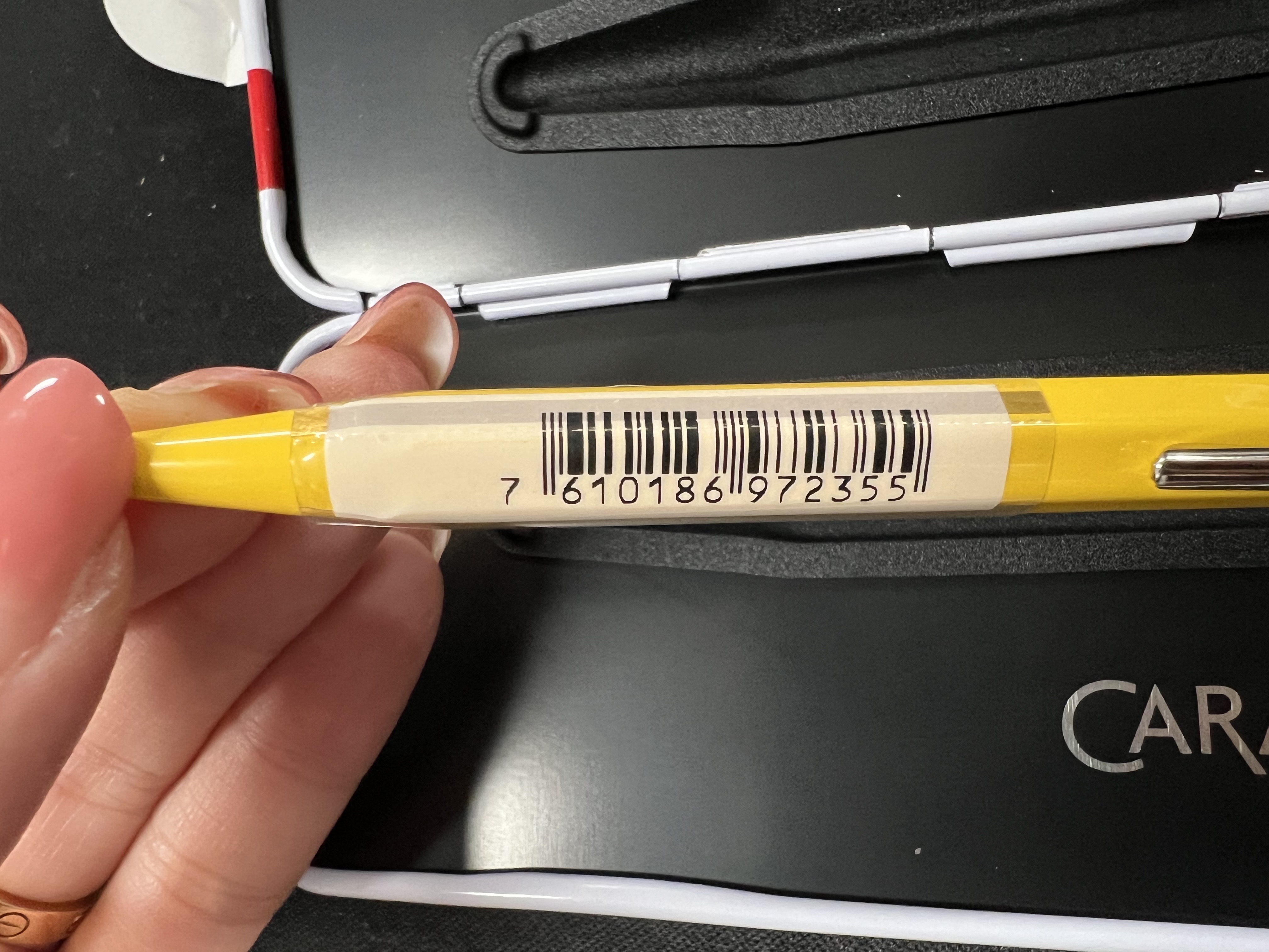 볼펜에 또 한 번 비닐포장이 되어 있어요. 스위스 바코드 번호인가 봅니다. 일단 제품자체는 모나미 볼펜 정도의 굵기라 남녀노소 호불호 없이 사용할만한 제품이고요, 신선한 색상과 깔끔한 디자인으로 앞으로 사무실에서 저의 애착 볼펜이 될 것 같아요.