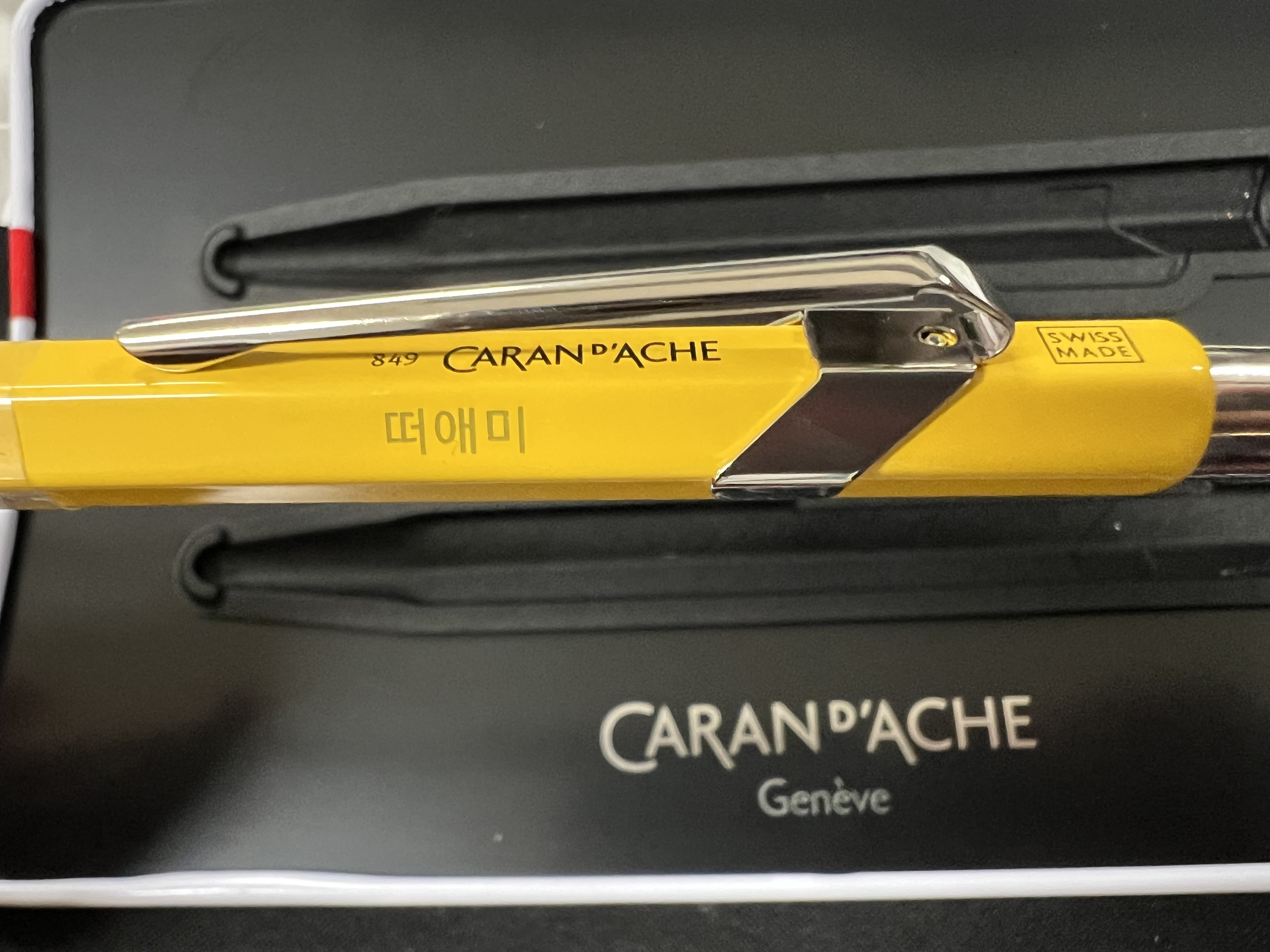 사실 저는 까렌다쉬라는 볼펜 브랜드를 이번에 처음 선물 받으면서 알게 되었는데, 이 가격 주고 굳이 볼펜을 살까 싶었는데 막상 받고 보니 고급스러움이 절로 묻어나는 제품이에요. 이렇게 각인도 가능해서 더 커스터마이징 한 느낌이 들고요, 매우 고급스러운 선물을 받은 기분이라 선물한 사람의 센스까지 돋보이더라고요.