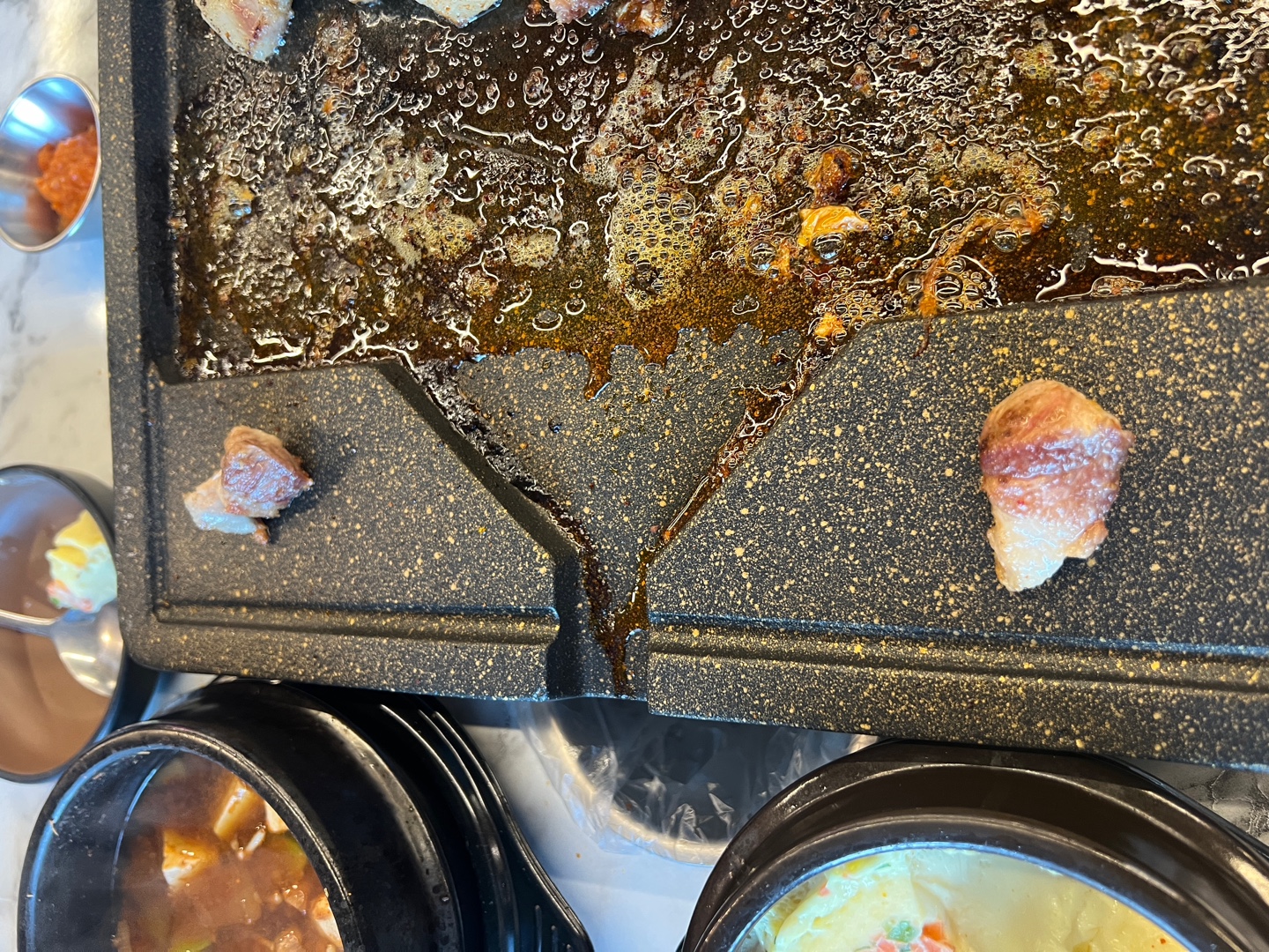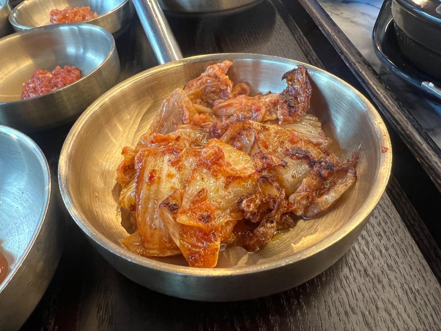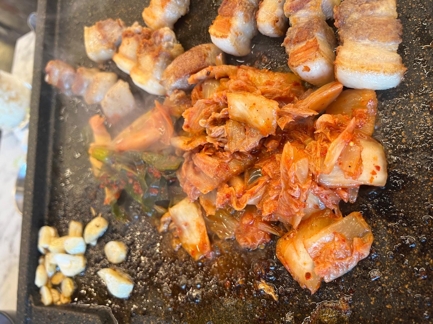 이번에는 배추김치와 고기를 같이 먹었는데요. 참고로 리필을 3번 했습니다. 구운 김치를 좋아하기도 하고 고기와 궁합이 미쳤거든요. 딱 적당히 익은 김치를 질 좋은 고기를 곁들여 먹으니까 계속 들어가더라고요.