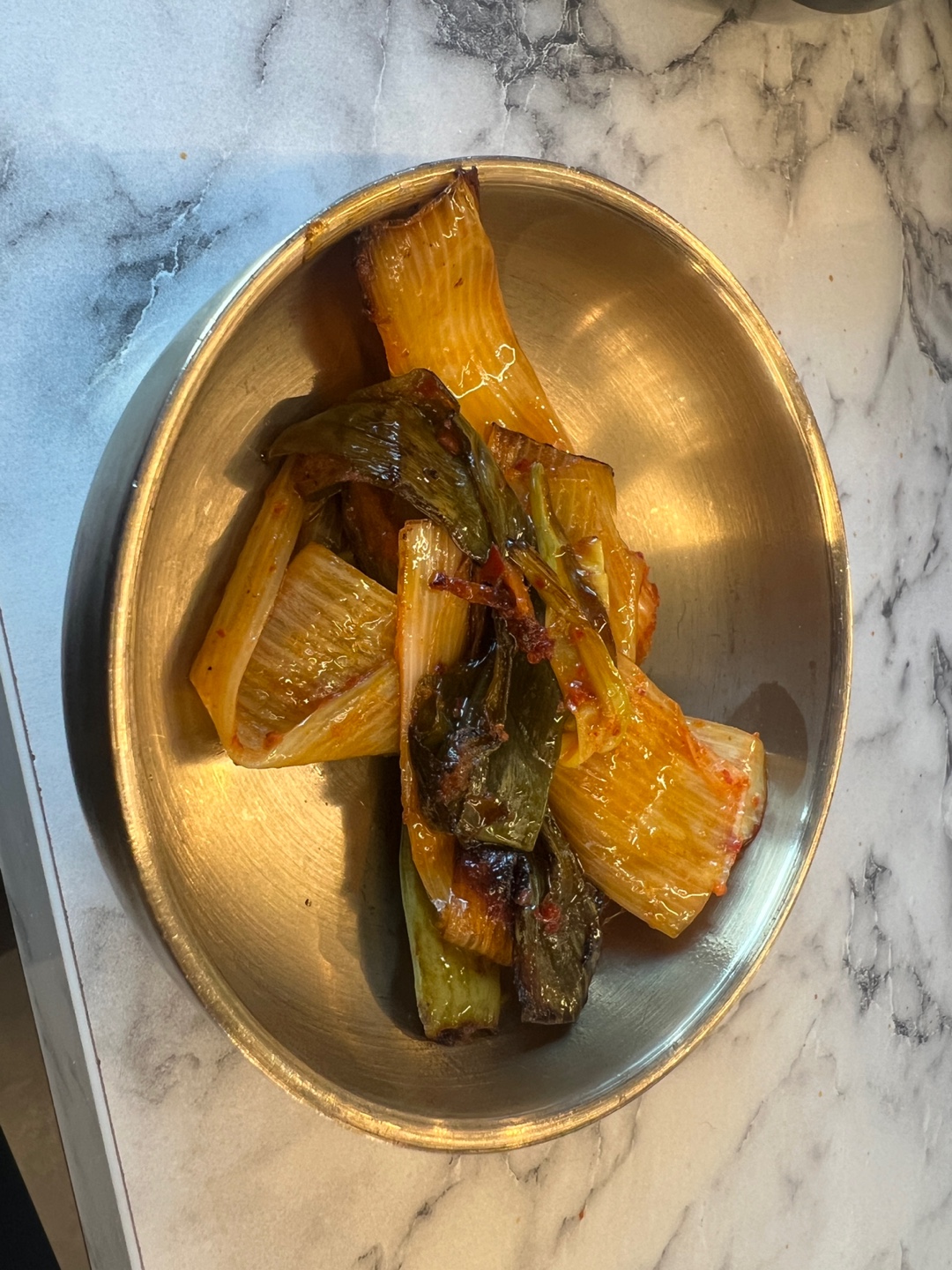 파김치를 이렇게 따로 구워서 주시는데요. 그냥 미쳤습니다. 맛있게 익은 대파김치를 돼지기름에 구웠으니까.. 정말 맛과 풍미가 미쳤습니다.
