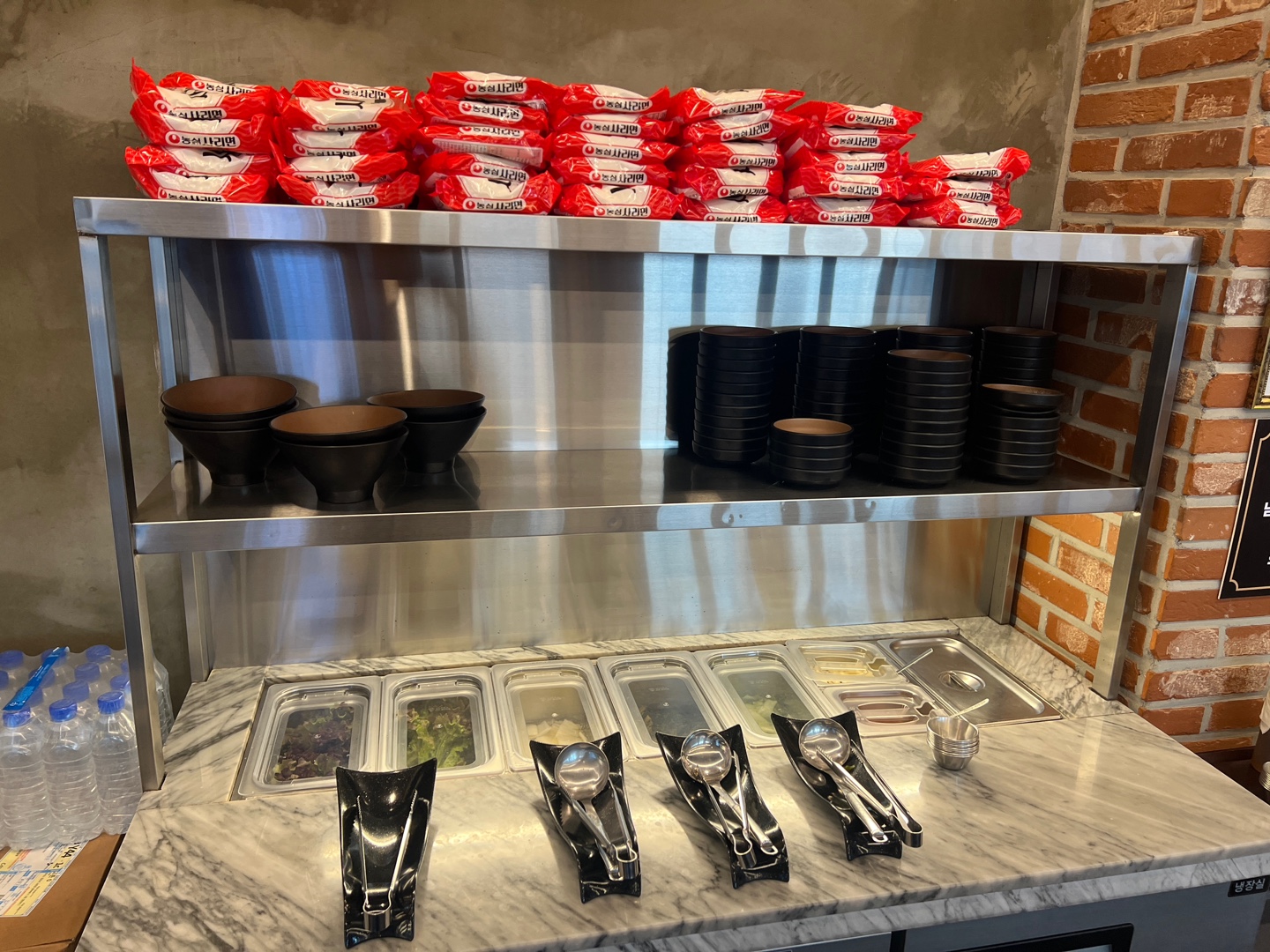 반찬 리필 공간입니다. 개인적으로 셀프로 리필하는 게 마음이 편해서 좋은데요. 여기도 이렇게 공간을 구비해 두셔서 너무 좋았습니다. 특히, 마늘과 상추는 기본적으로 세팅을 안 해주시니까 야채바구니에 따로 담아서 가져다 드시면 됩니다.