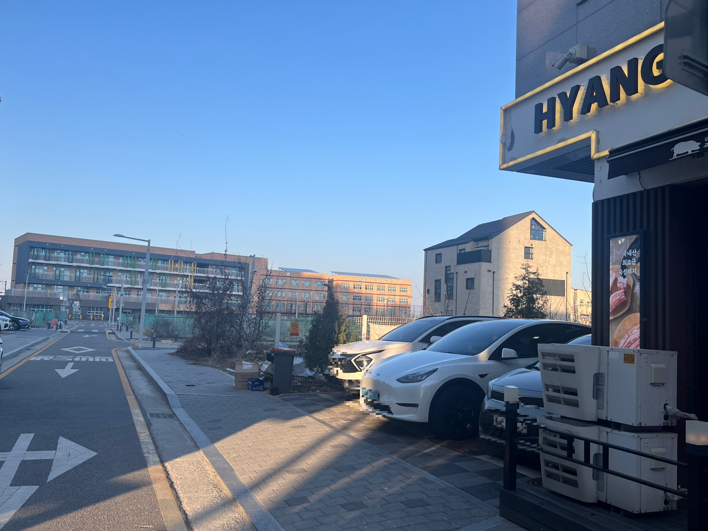 건물 전경입니다. 정말 정말 깔끔하고 뭔가 힙한 느낌입니다. 신도시 느낌이라 아파트 외에 주변은 휑한 느낌이고요. 주차공간이 많지 않아서 가게 옆 주차장 혹은 공영주차장 등에 대셔야 합니다. 주차 공간이 많아 보이는 동네는 아니었습니다.