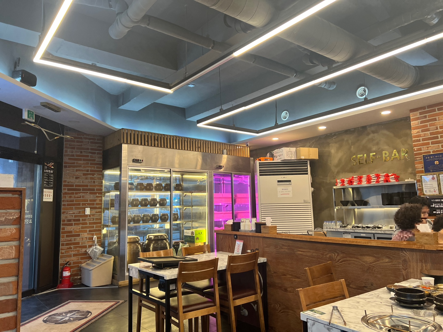 가게 내부 분위기 또한 힙합니다. 일단 매장 분위기가 밝아서 좋았습니다. 고깃집 특유의 어둑어둑한 분위기에 연기 가득한 곳은 아니어서 너무 좋았습니다. 아이랑 같이 가기에도 좋은 식당이었습니다. 아기 의자도 구비되어 있어서 가족 단위로 찾아가기에 좋았습니다.