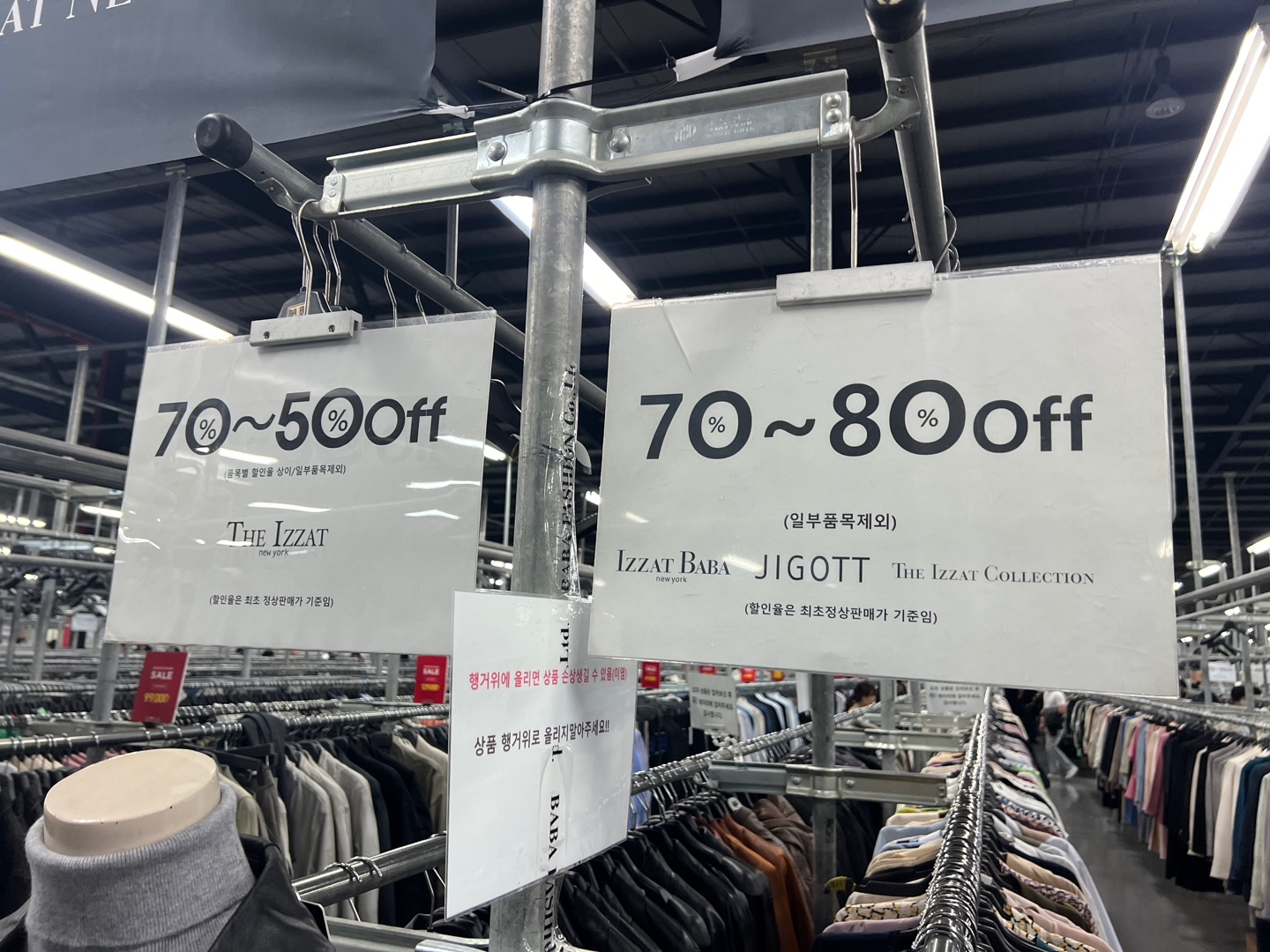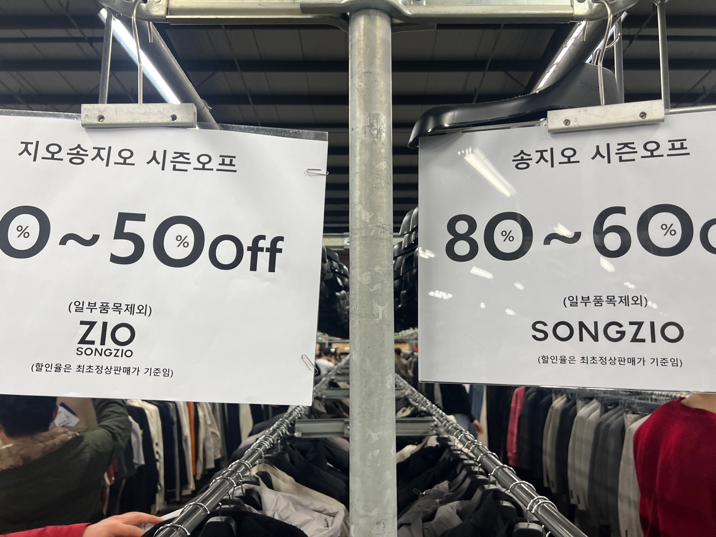 이렇게 브랜드별로 세일률이 상이합니다. 지오송지오나 송지오와 같은 브랜드도 백화점에서 싸잖아요. 여기서는 반값 이상으로 할인을 때리니, 슬슬 범접할 수 있는 가격대로 와서 좋았습니다.