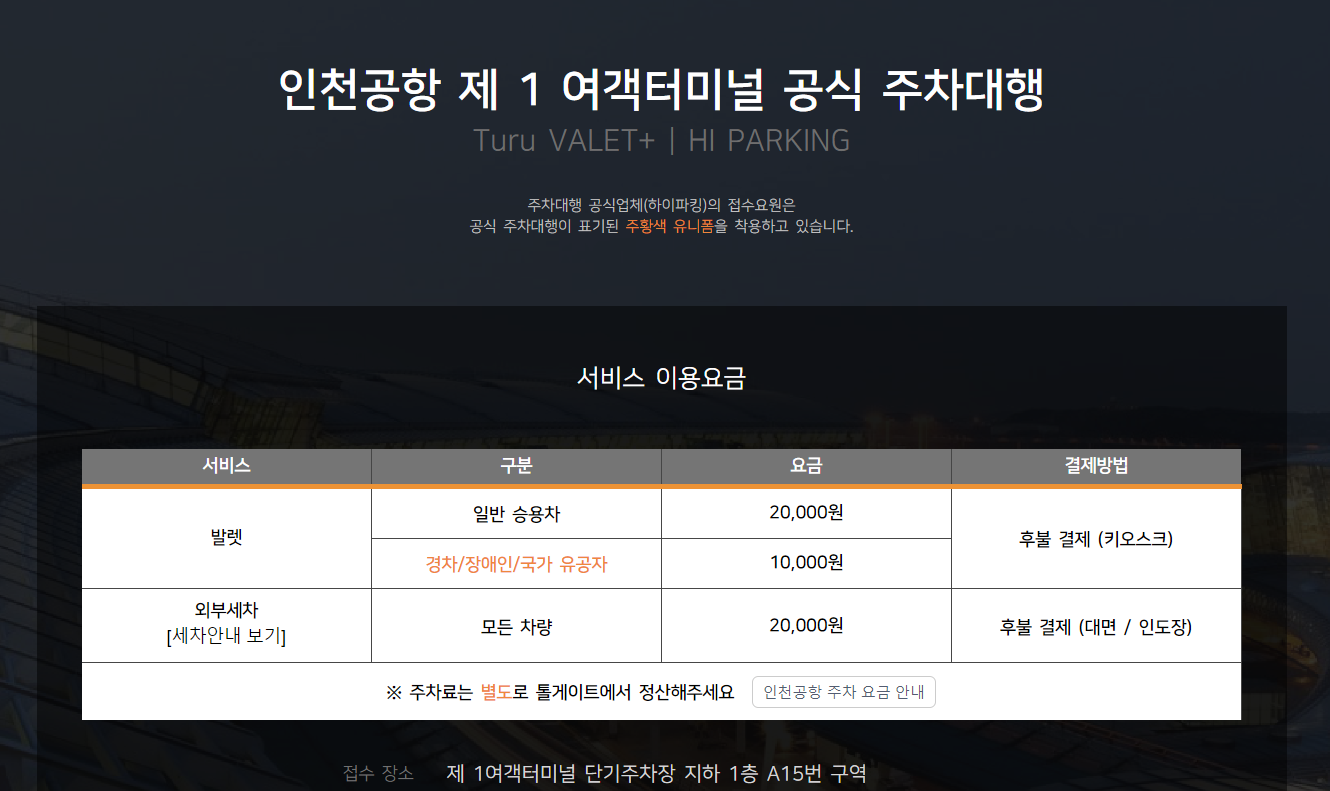 먼저, 인천공항 공식 주차대행 사이트에 접속하셔서 예약하시면 됩니다. pc와 모바일 모두 예약 가능하니까 아래 링크 들어가셔서 예약을 먼저 하시고요. Turu 발렛이 공식 업체입니다.