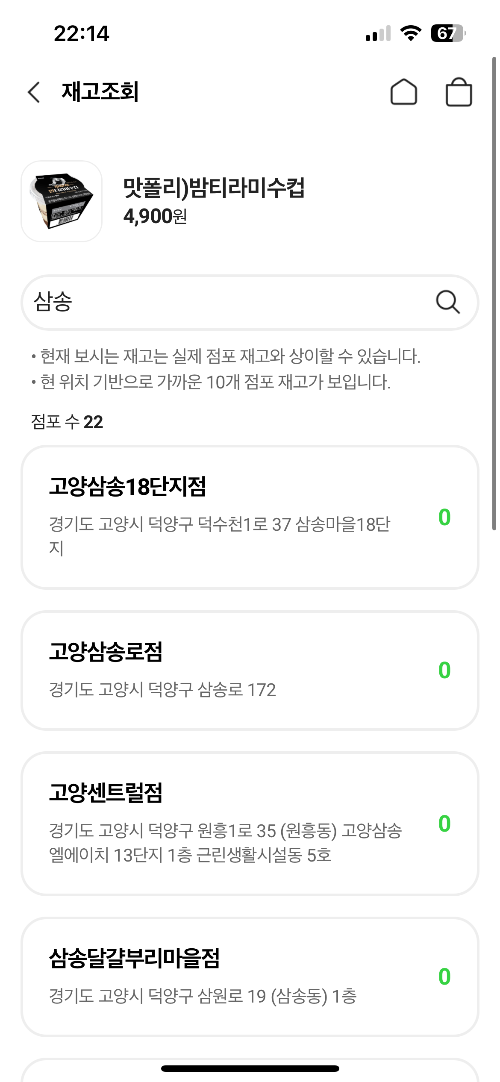 가장 추천하는 방법은 재고조회를 통해 내가 위치한 편의점 쪽에 재고가 있는 점으로 가서 사는 게 베스트로 생각합니다. 어플 메인화면에서 재고조회 누르시고요.