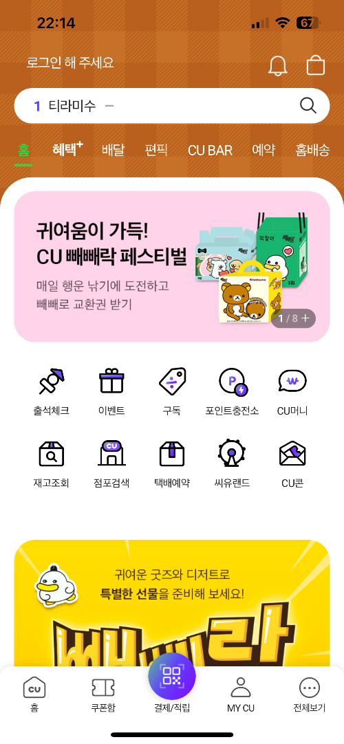 구매 방법은 씨유 어플에서 예약해서 사시거나, 재고조회를 통해 현장에서 사시는 방법이 있습니다. 그냥 무심코 cu 아무 데나 들어가서 밤티라미수를 살 생각하신다면 아마 못 사실 겁니다. 아예 안 들어오는 지점도 있을 거고, 소량 들어오더라도 바로 팔리니까요. 씨유 어플에서 예약해서 편하게 수령하는 것이 가장 좋겠지만, 바쁜 와중에 언제 입고 시간에 맞춰서 예약해서 사겠어요 ㅠㅠ 저 같은 귀차니즘이 강한 분들께는 정말 비추고요.
