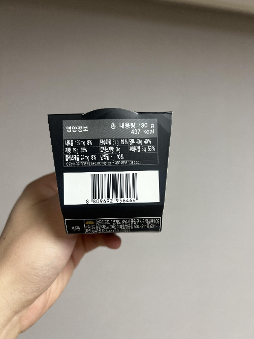 저 영롱한 포장지 보세요 ㅋㅋ 실물 영접하기까지 상당히 힘들었네요. 웃긴 게 칼로리가 유통 시기마다 다 다르더라고요. 437kcal, 411kcal, 400kcal까지 세 가지 버전이 있습니다. 리뉴얼된 걸로 알아서 칼로리가 가장 낮은 게 덜 달고 가장 나중에 나온 걸로 알고 있어요. 저는 운이 안 좋게도 초창기 버전을 샀네요ㅠㅠ
