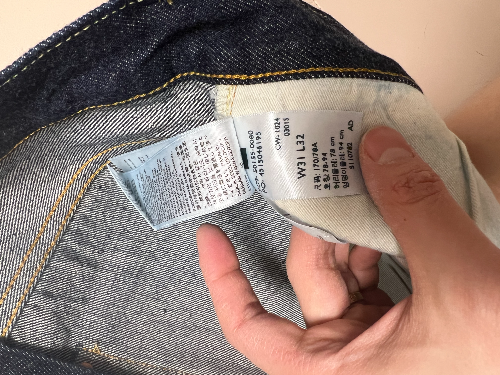 여기서 난항이 생긴 게 국내는 리바이즈 홀수사이즈를 취급 안 해서 또 난감하더라고요. 결국 일본 구매대행으로 어렵게 구했고, 소킹하기 귀찮아서 린스드로 구매했습니다. 구매한 사이즈는 31x32입니다. 리지드였으면 기장 34로 가야 하는데요. 린스드라 32로 갔습니다. 키 182cm 기준 딱 알맞은 기장입니다.